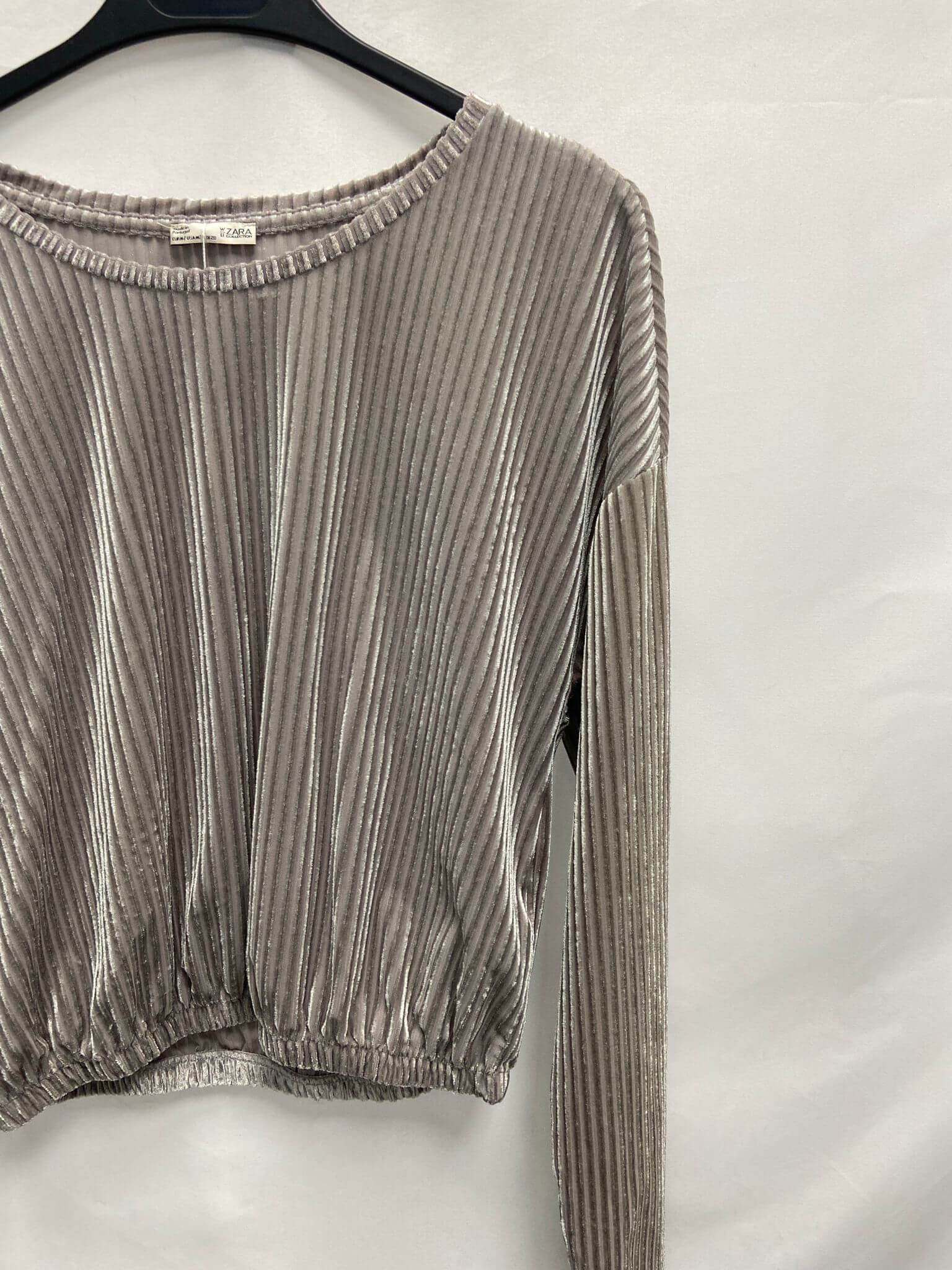 Jersey beige con dibujo de una cebra detrás y coderas con estampado de cebra. Elástico