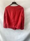 Cazadora de lino color coral, se abrocha con cremallera, se ajusta a la cintura por detrás. No es elástica. De sisa a sisa 44 cm largo 50 cm.