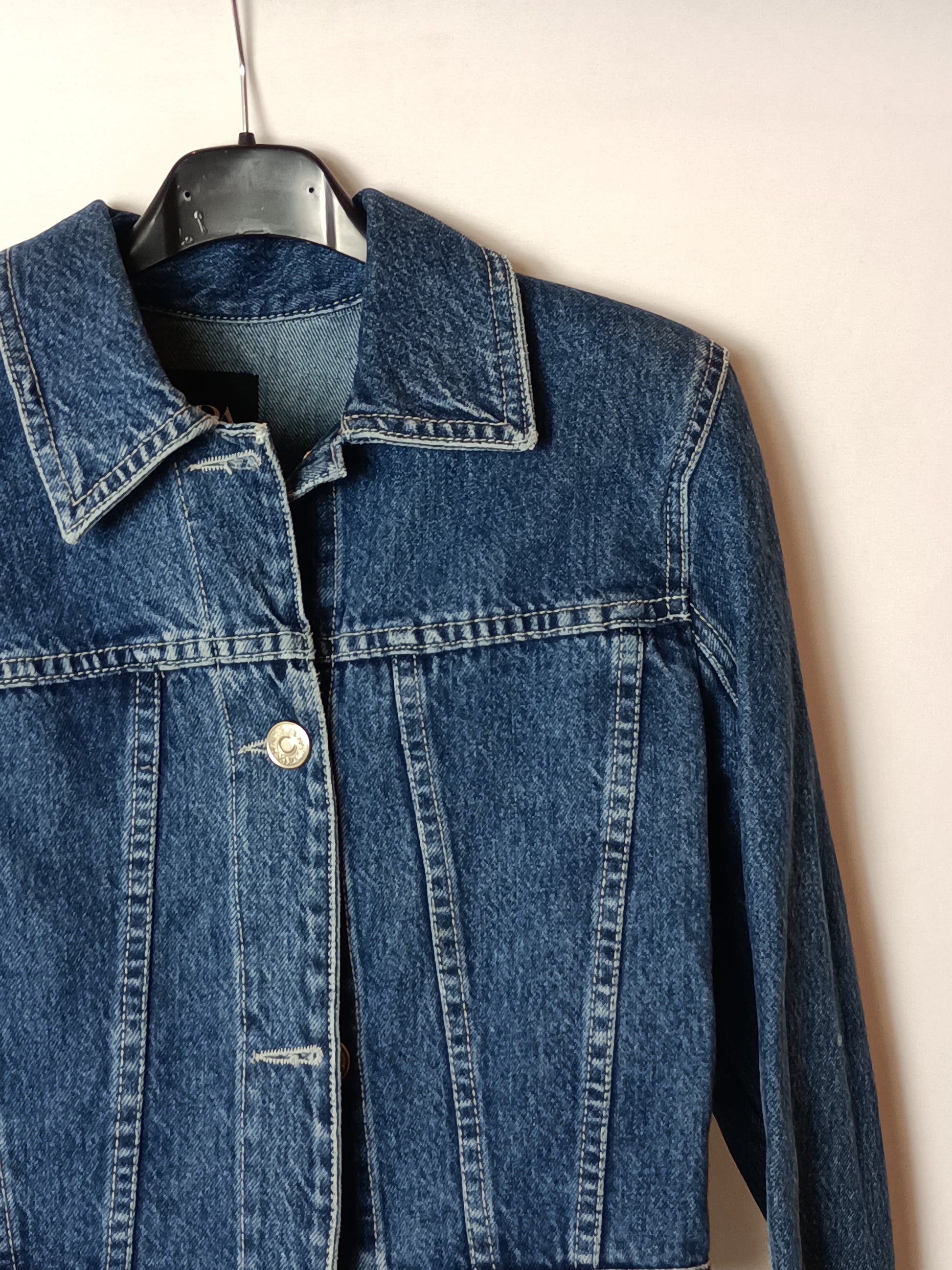 ZARA. Cazadora vaquera hombreras T.xs