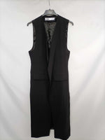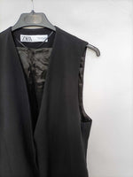 Zara. M. Chaleco negro largo con aperturas laterales. No elástico. Se abrocha con un botón. De sisa a sisa 46 cm largo 125 cm