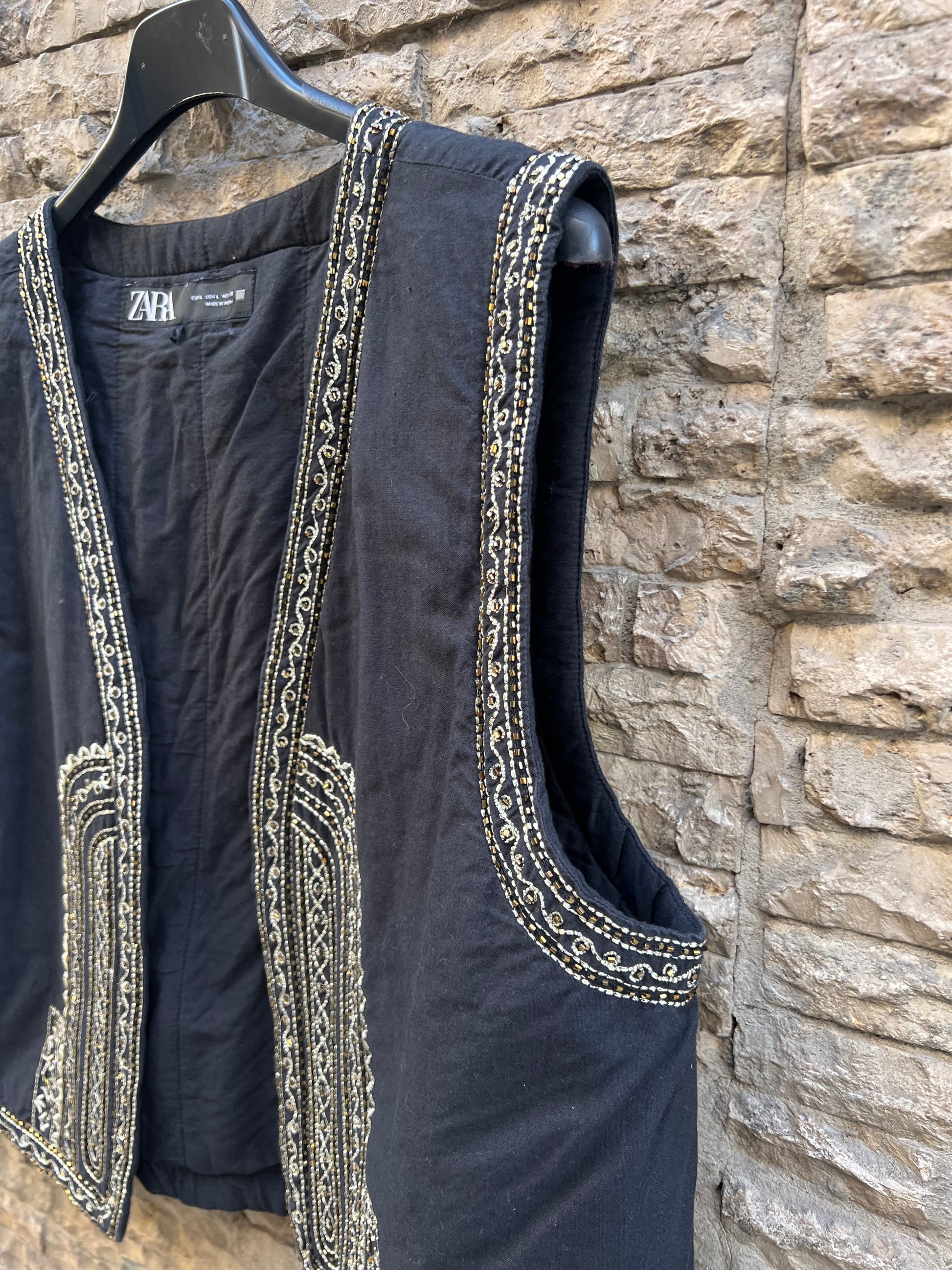 Chaleco negro acolchado abalorios. Espalda 50 cm, largo 47 cm