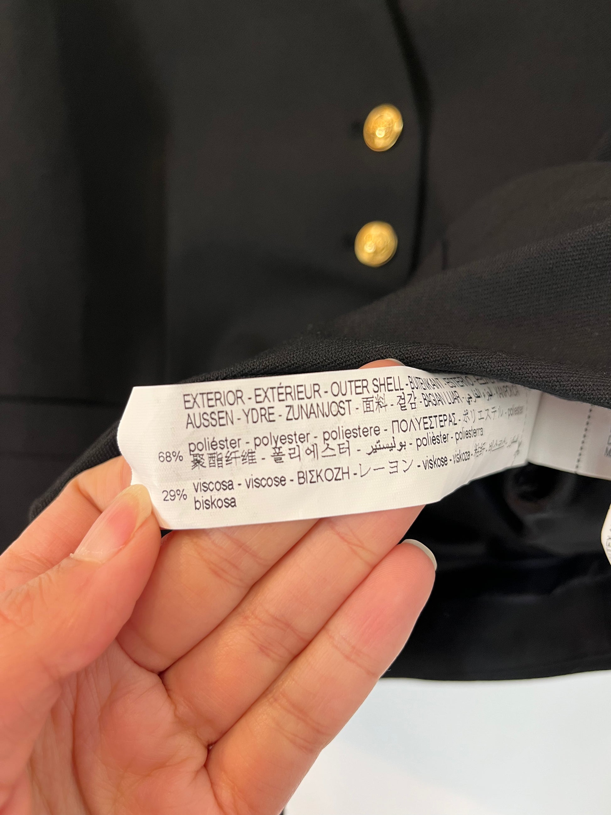 Chaleco negro botones dorados. Espalda 44 cm, largo 49 cm