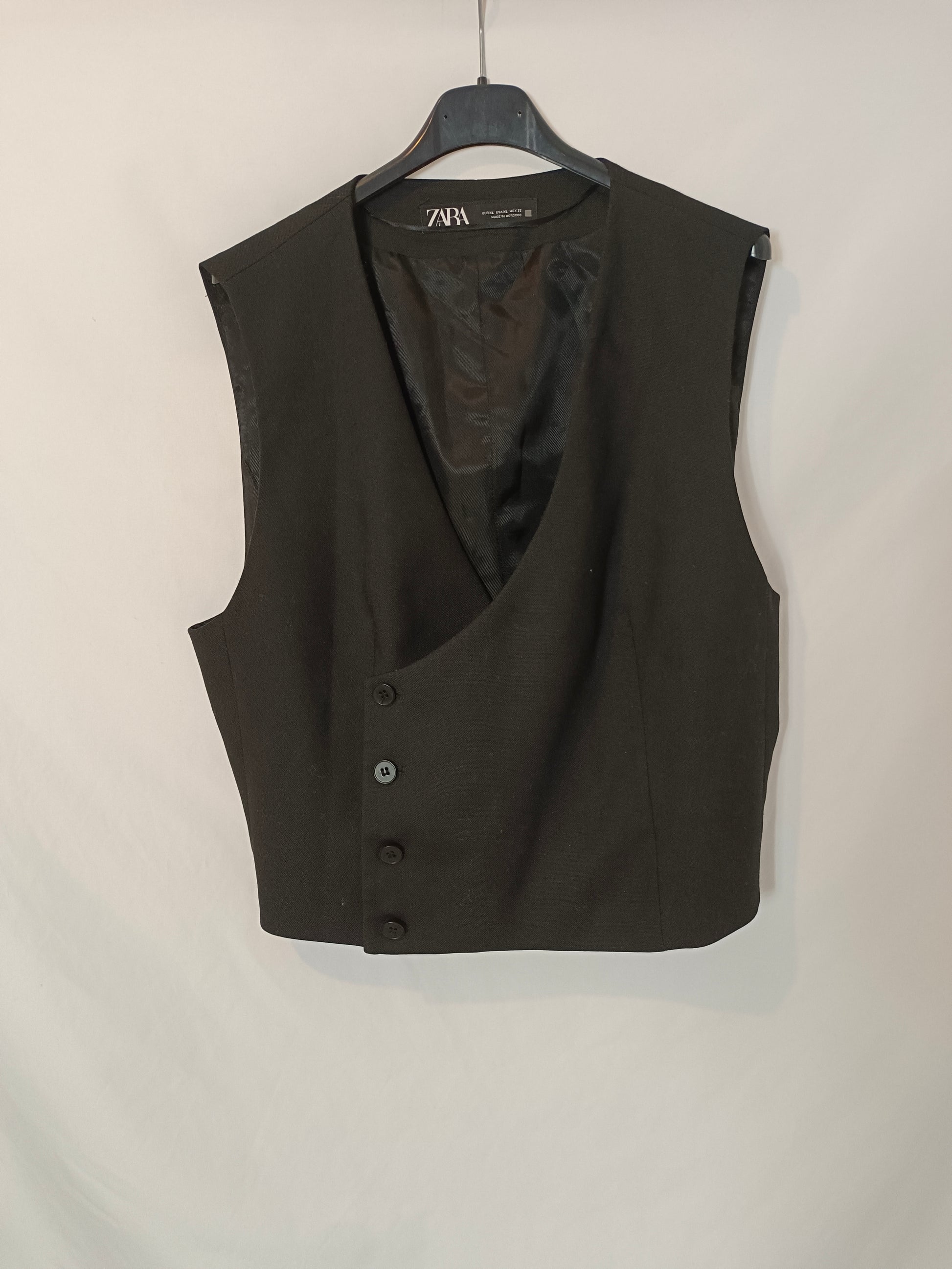 chaleco negro cruzado. de sisa a sisa 51 cm