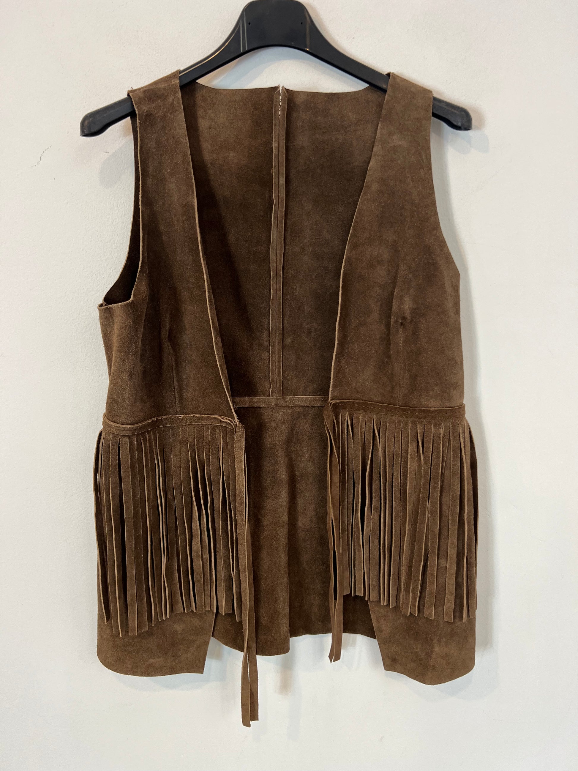 ZARA. Chaleco piel flecos. T M