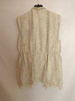 chaleco beige de tejido tweed con detalle de abalorios. tara: cuello un poco alguna manchita