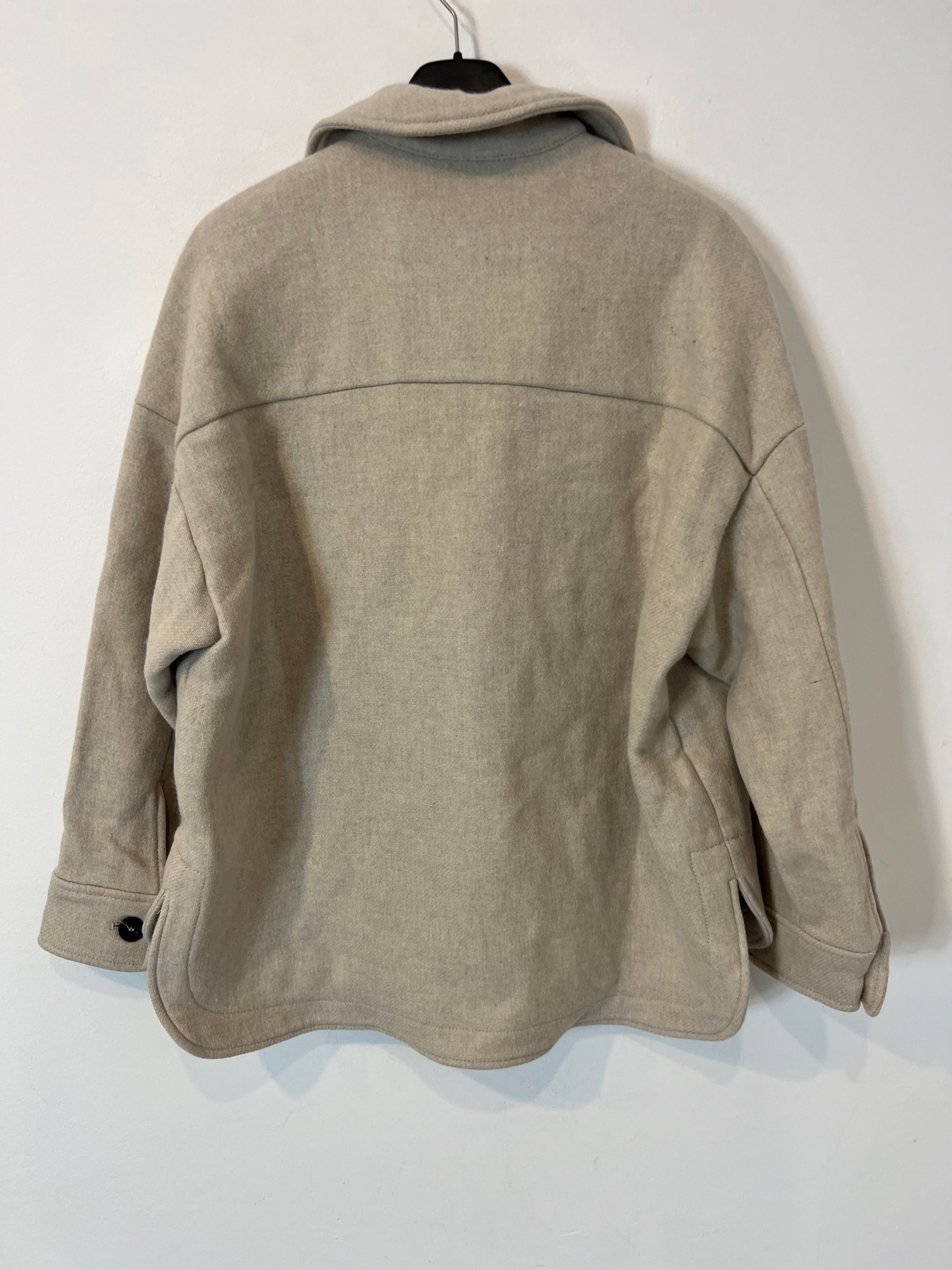 chaqueta beige de paño abotonado. De sisa a sisa 54 cm largo 61 cm