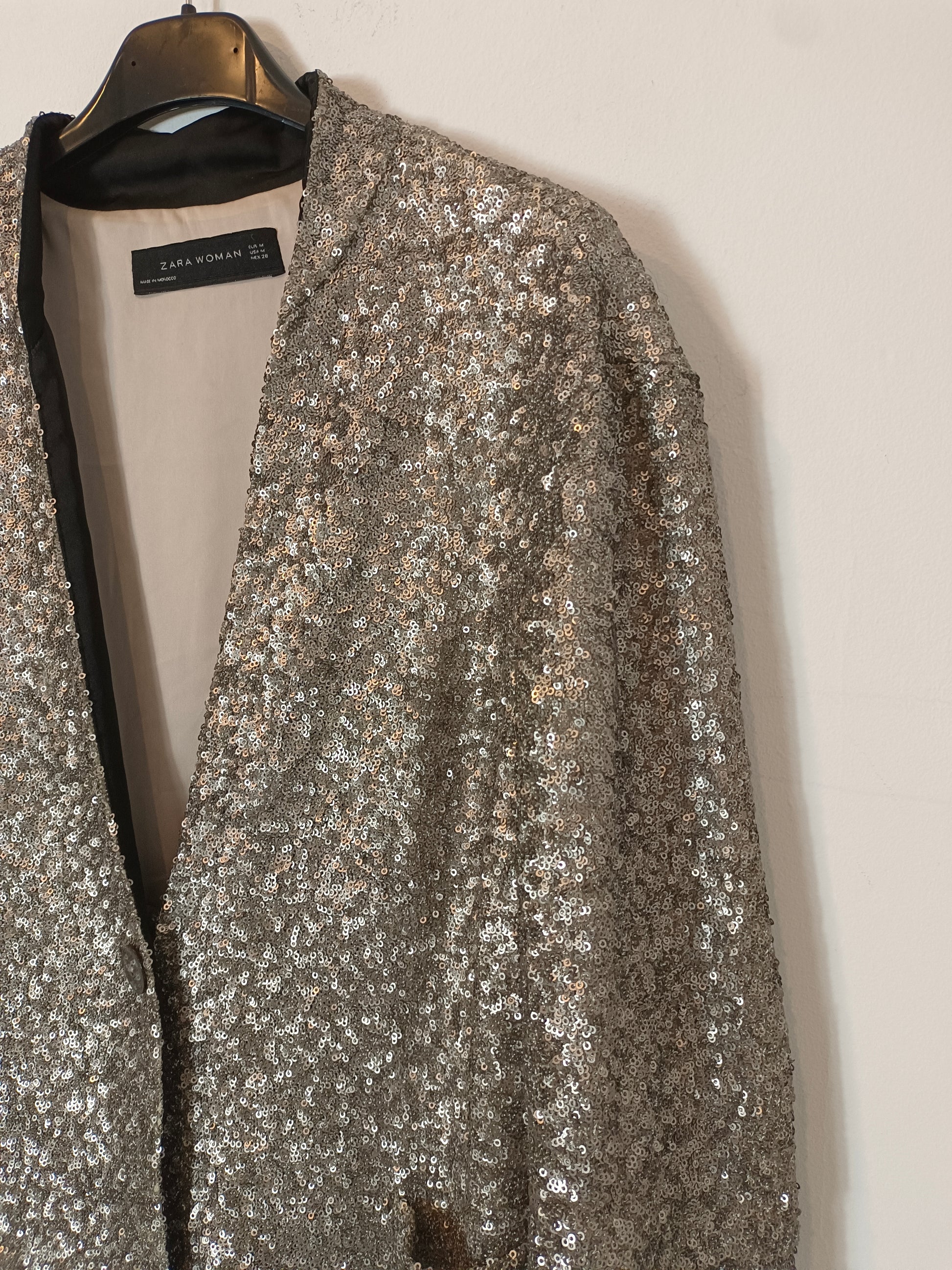 ZARA. Chaqueta lentejuelas plateadas T.m