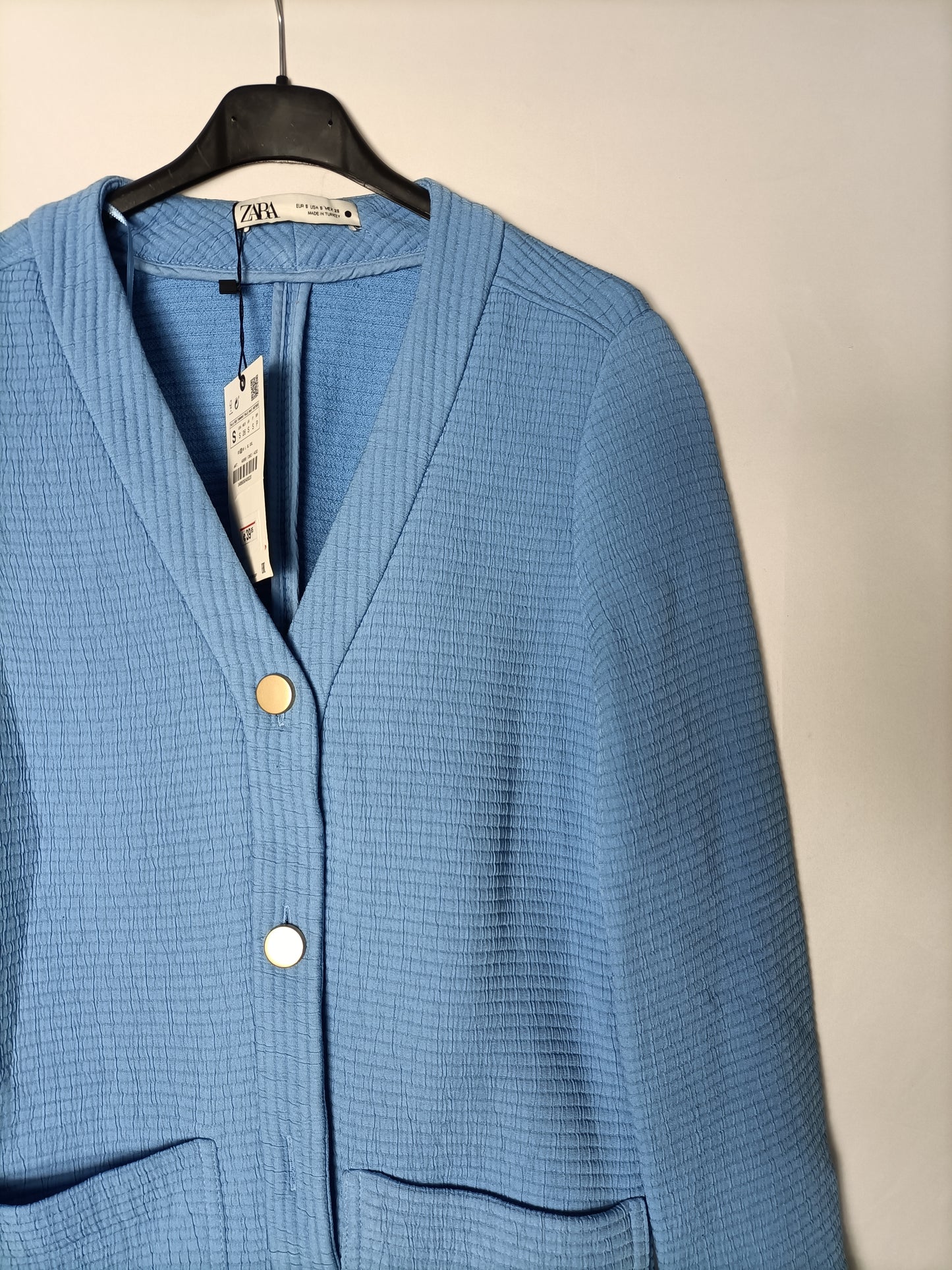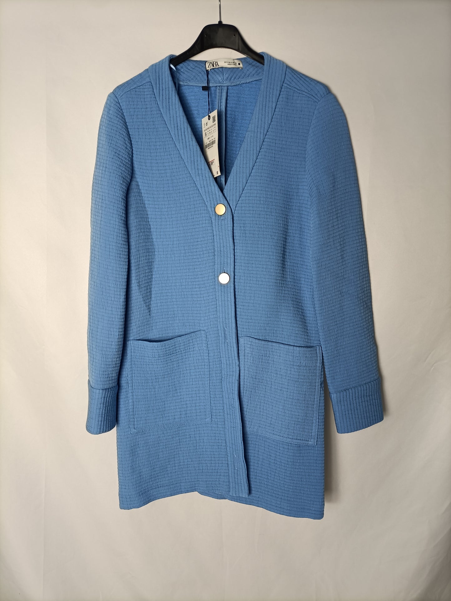 NUEVO CON ETIQUETA. Chaqueta textura azul claro. Tejido semi elástico