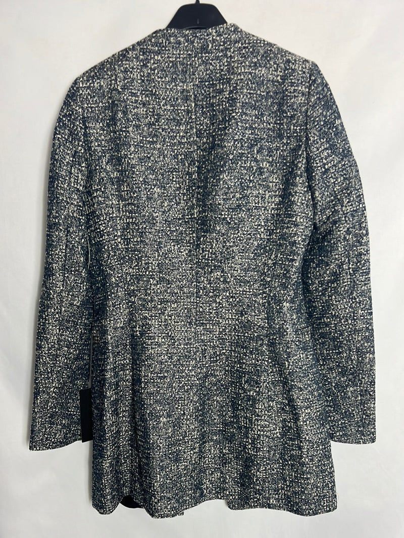 ZARA. Chaqueta larga tweed azul y blanca. T S