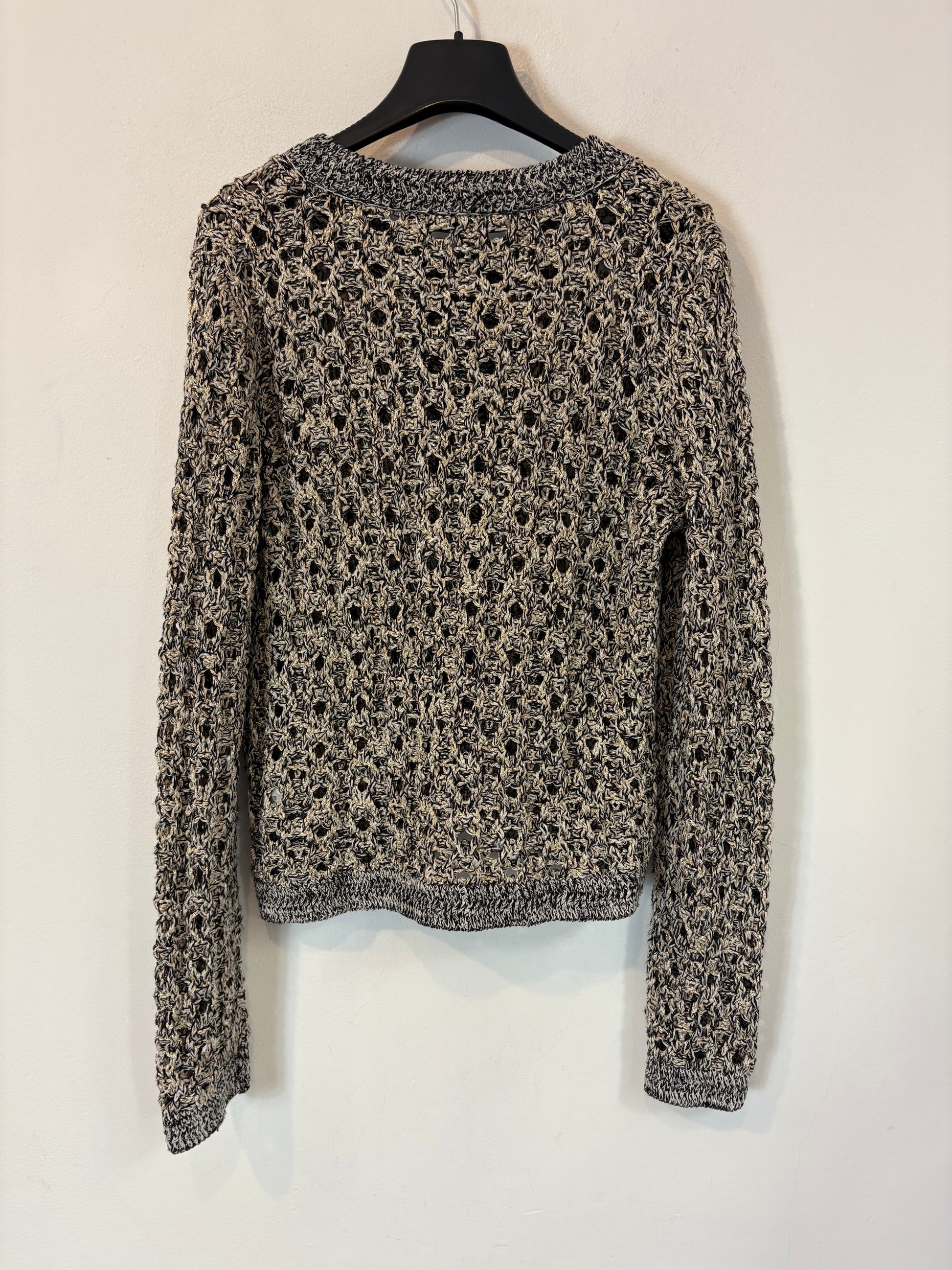 Chaqueta punto abierta. detalles dorados. largo 56 cm