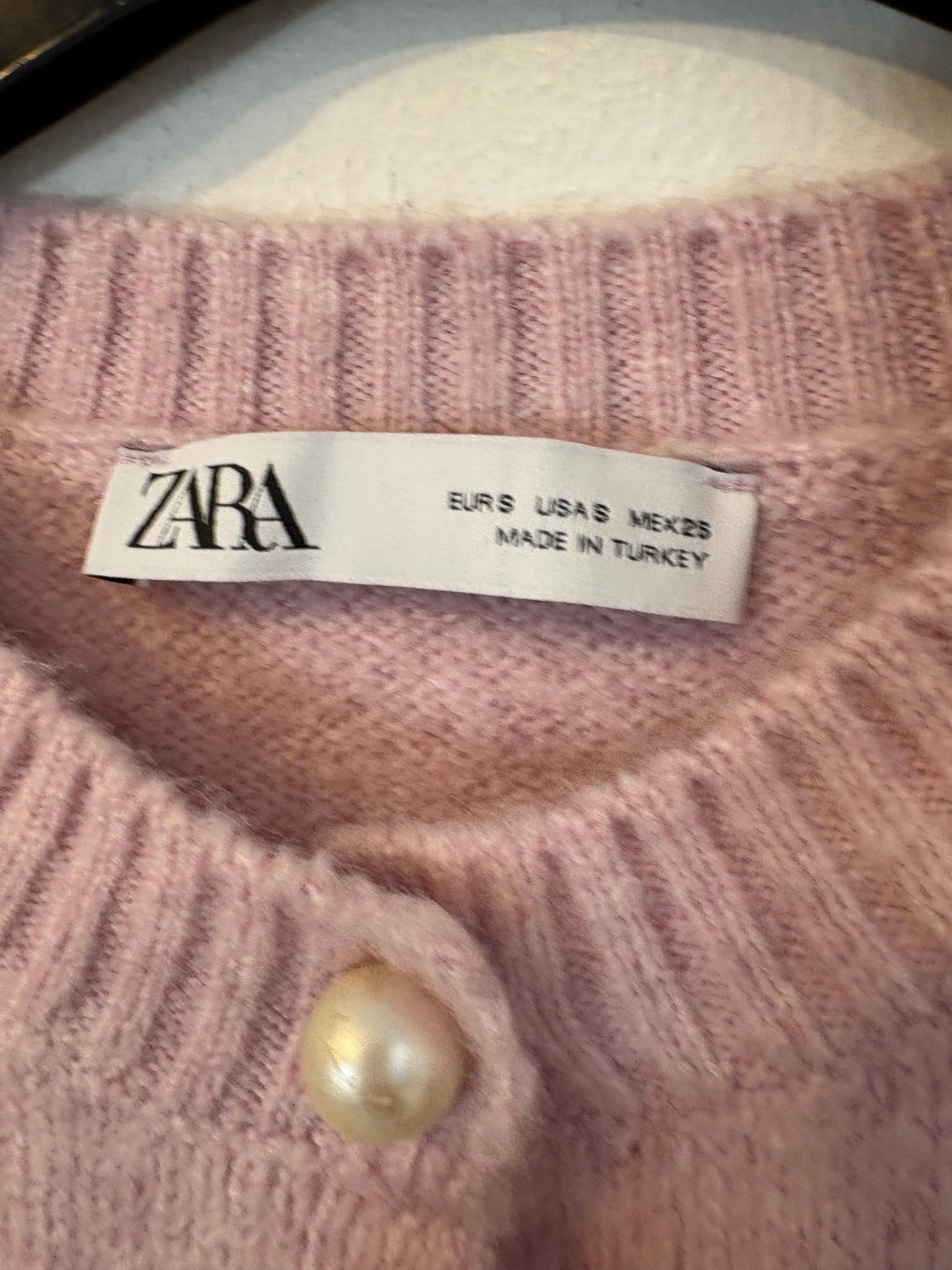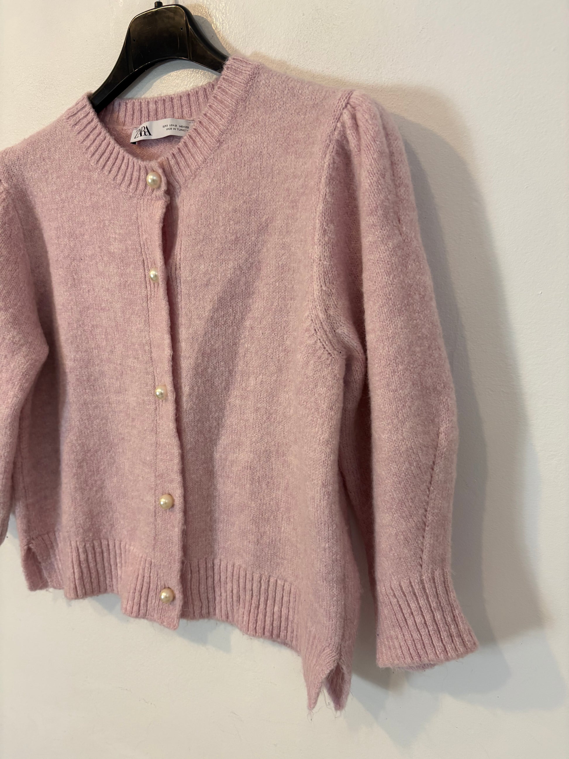 ZARA. Chaqueta punto rosa botones perla