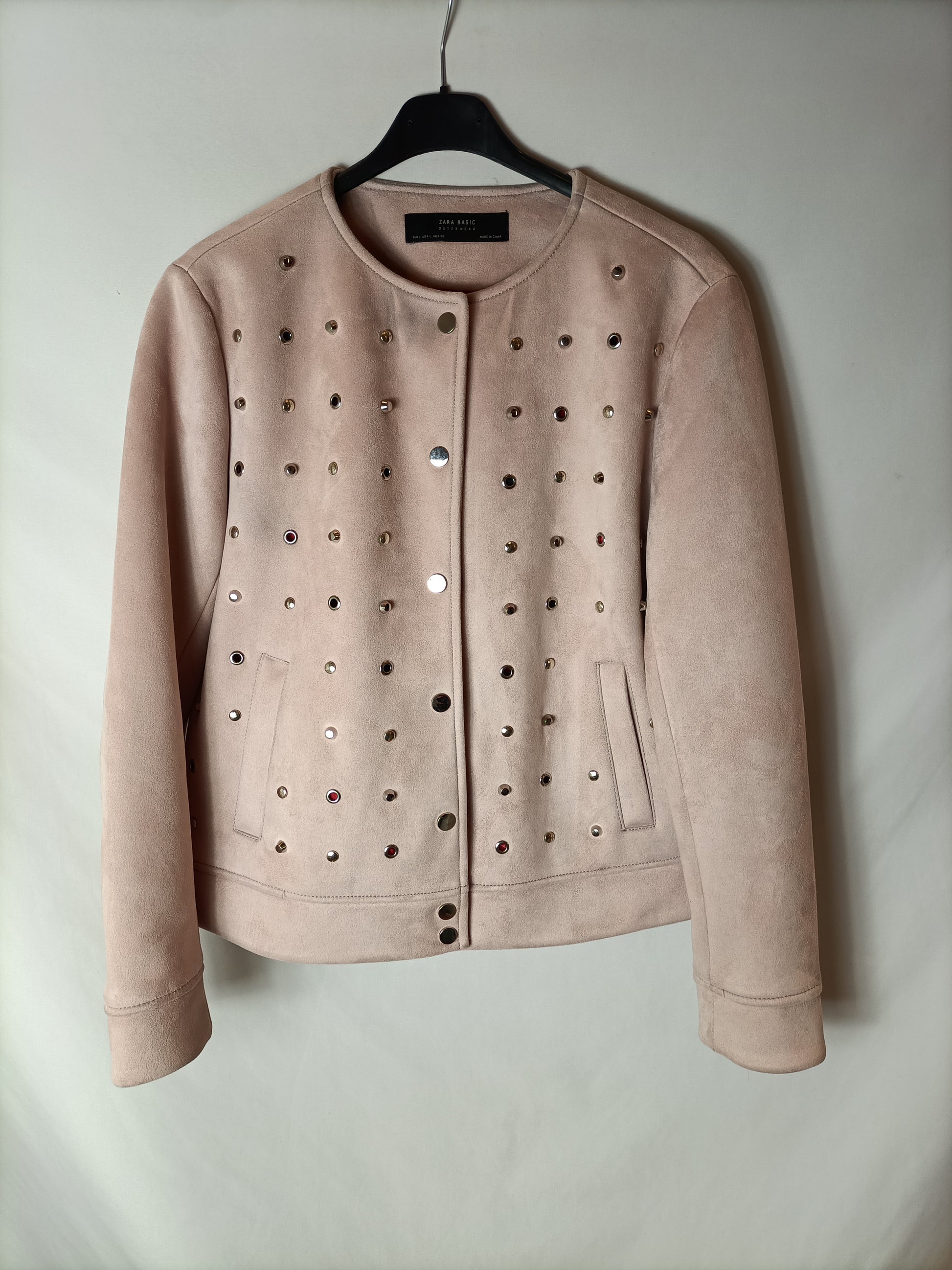 ZARA. Chaqueta rosa tachulas T.l