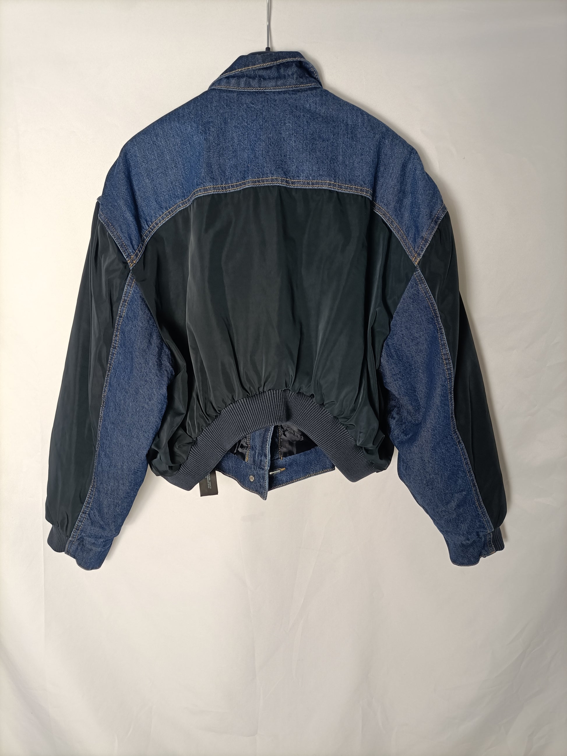 NUEVO CON ETIQUETA. Chaqueta vaquera manga textura e interior acolchado