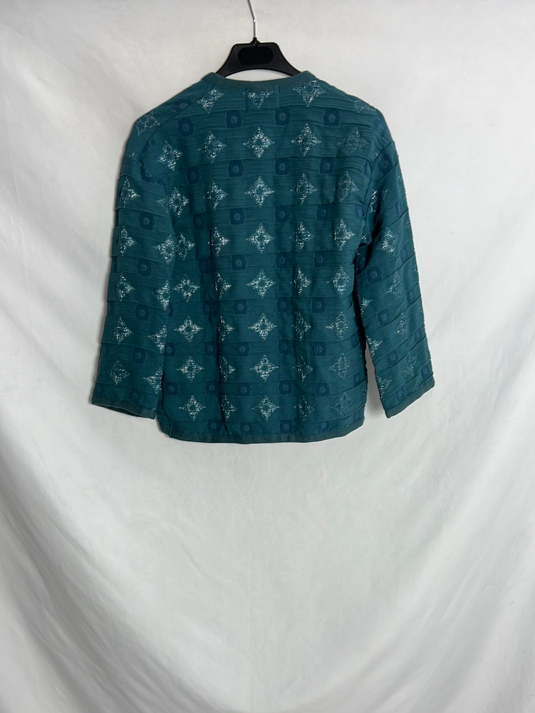 ZARA. Chaqueta verde textura hilos. T 9-10 años (xxs)
