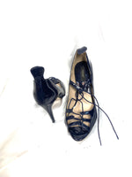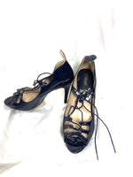 Zapatos de azul marino de charol con cuerdas. tacón 11 cm