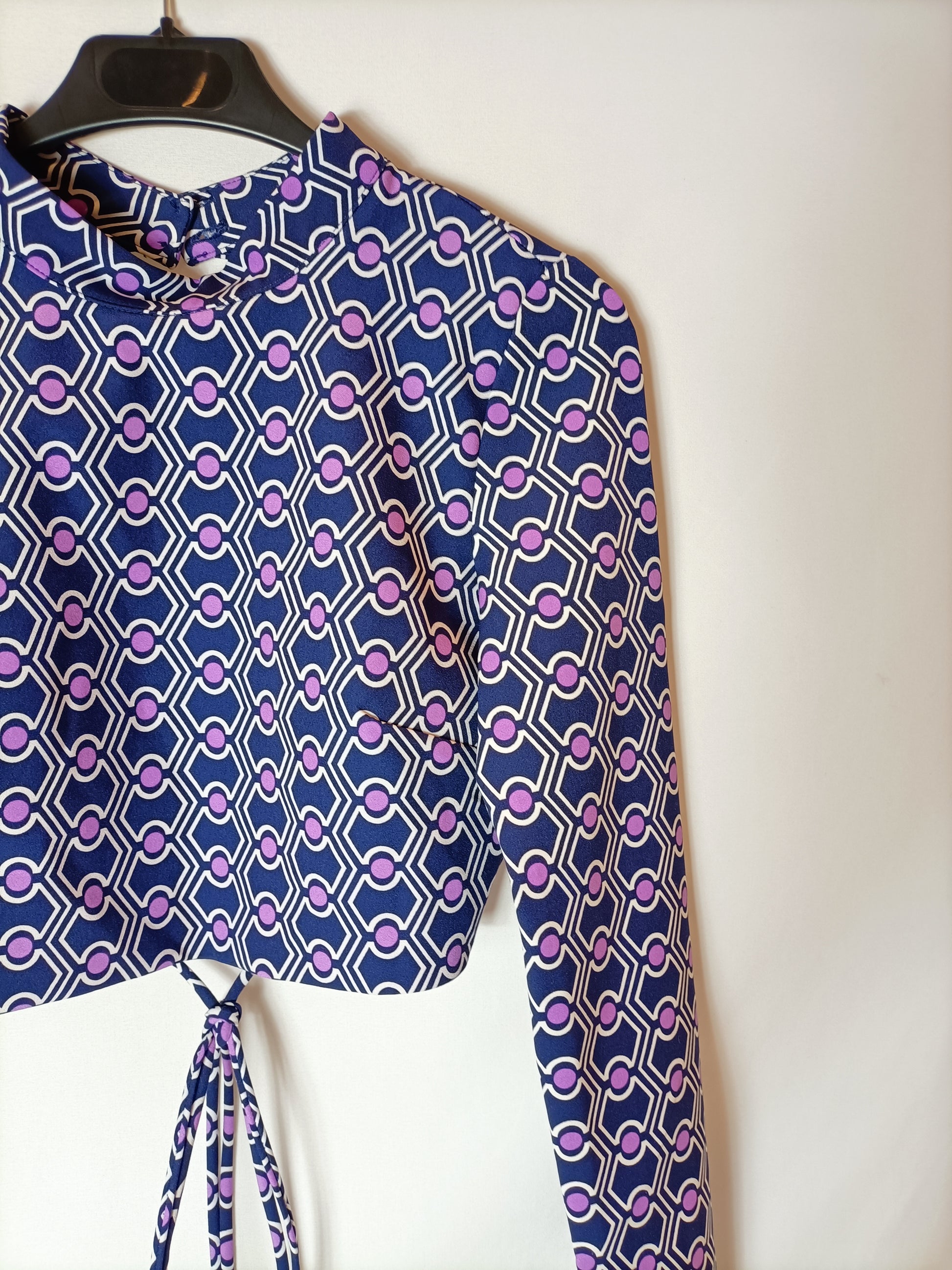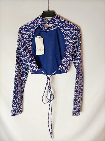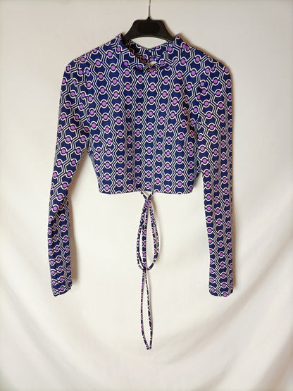 NUEVO CON ETIQUETA. Crop top estampado espalda descubierta. Tejido semi elástico