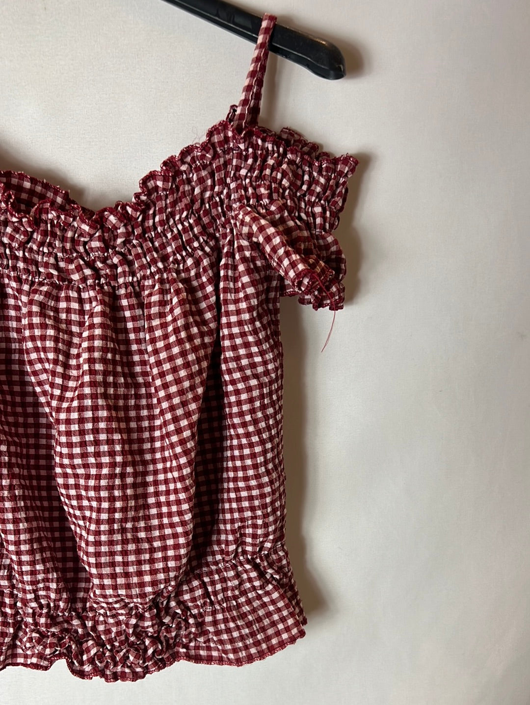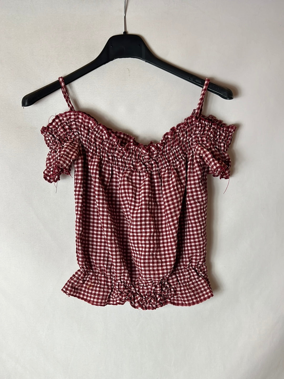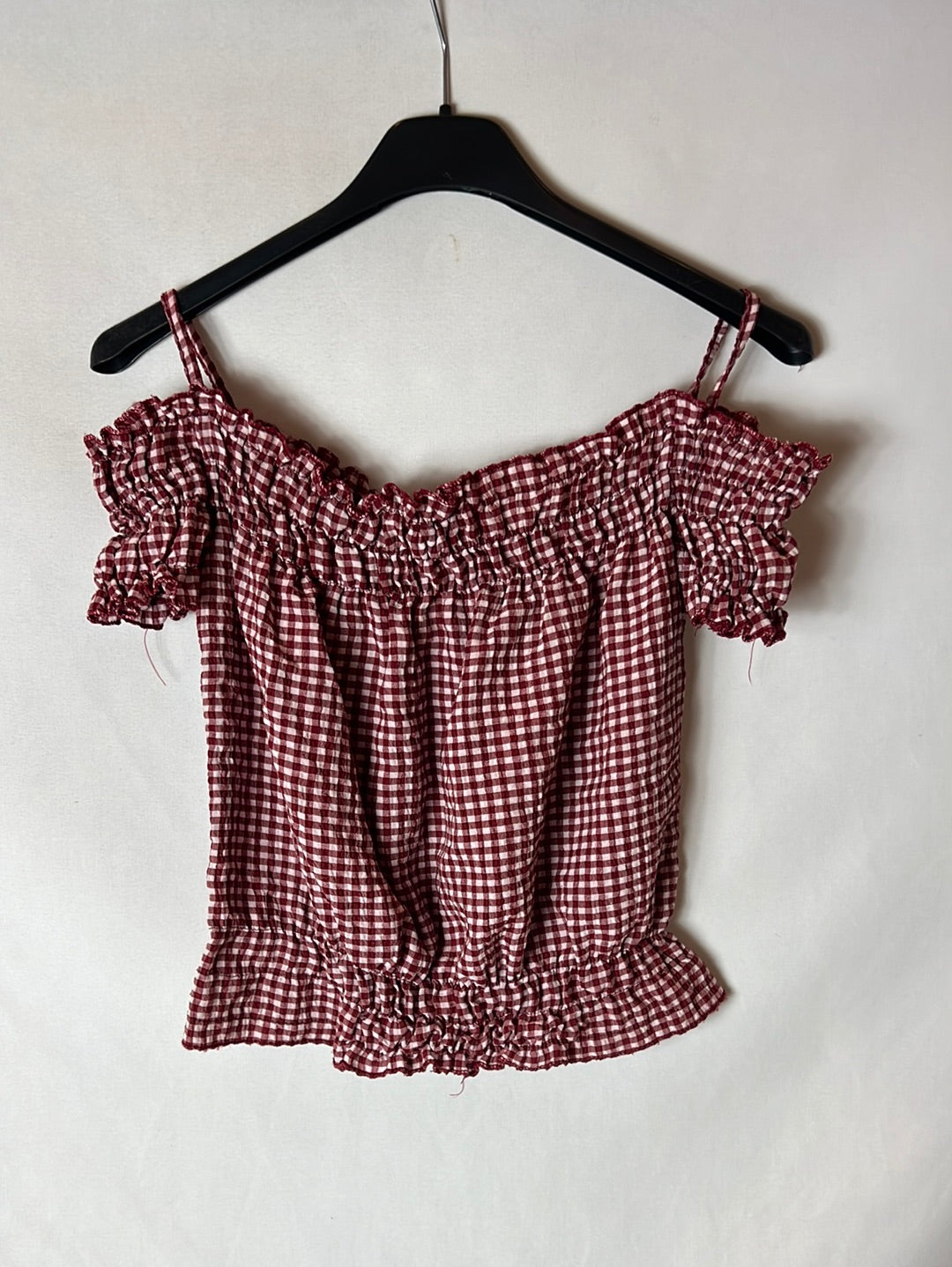Croptop de cuadros vichí rojo y blanco con cintura y escote elástico. largo cm