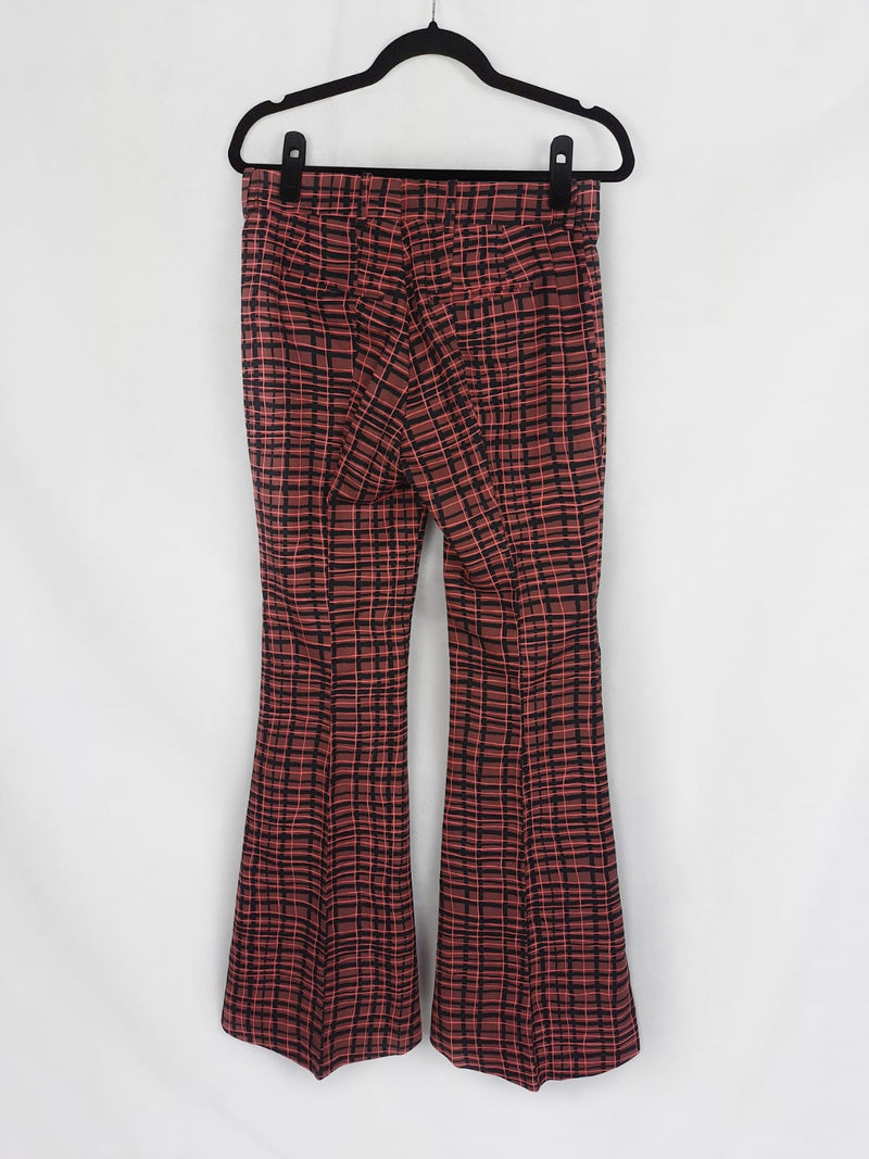 Pantalón de campana de cuadros en tonos flúor y negro de tejido rígido. No es elástico. Cintura 38 cm largo 107 cm. NUEVO CON ETIQUETA