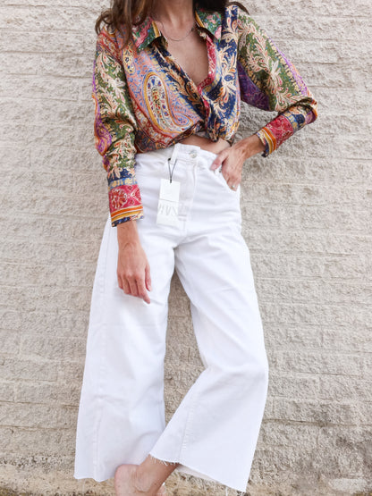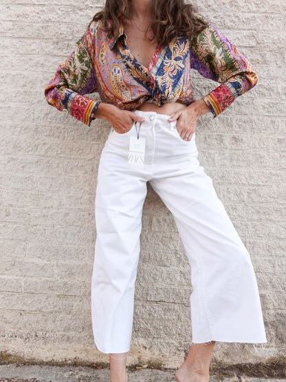 NUEVOS CON ETIQUETA. Pantalón blanco denim culotte. Cintura 33 Largo 92 cm