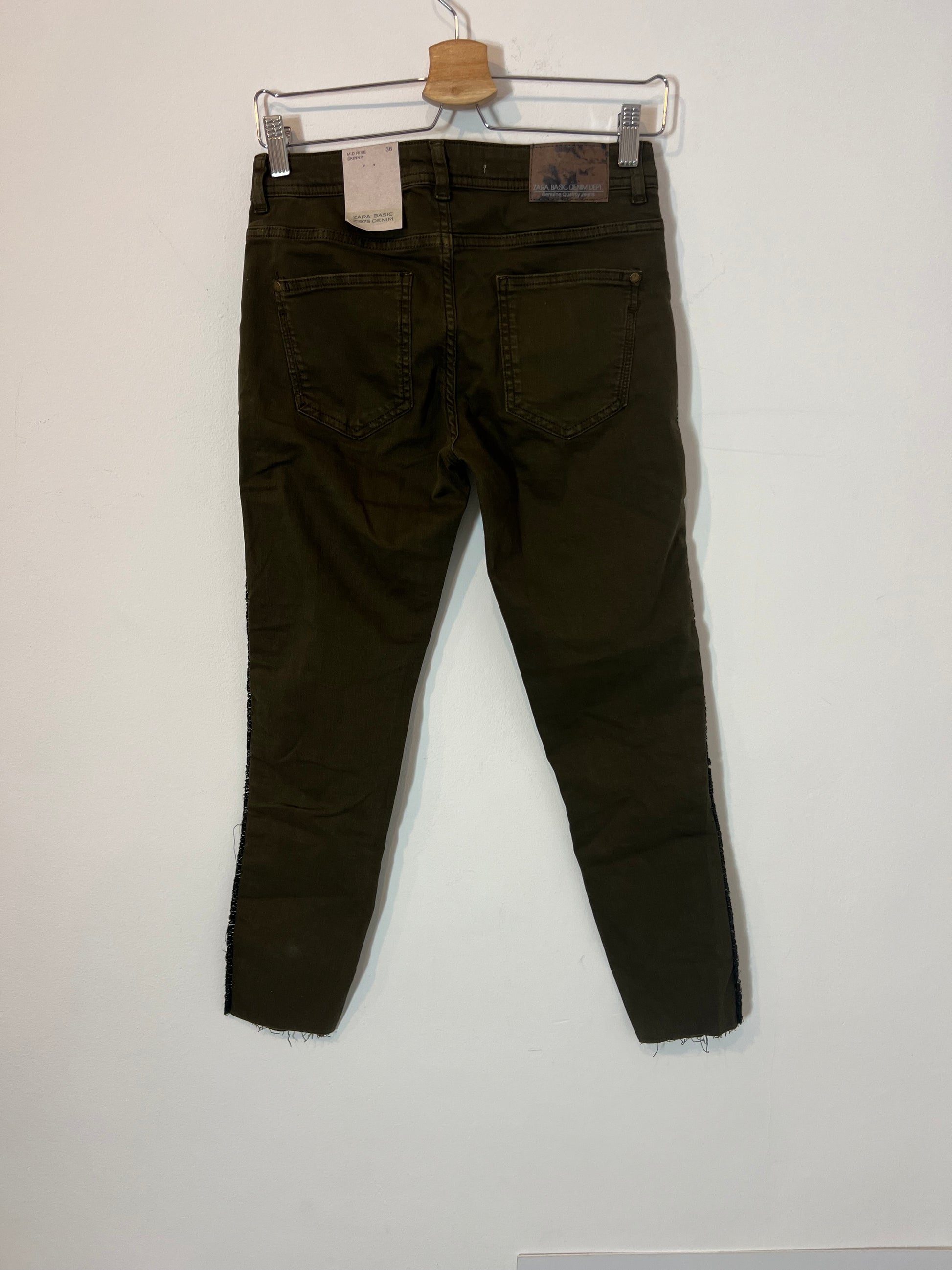 ZARA. Denim pitillo verde detalle lateral. T 36