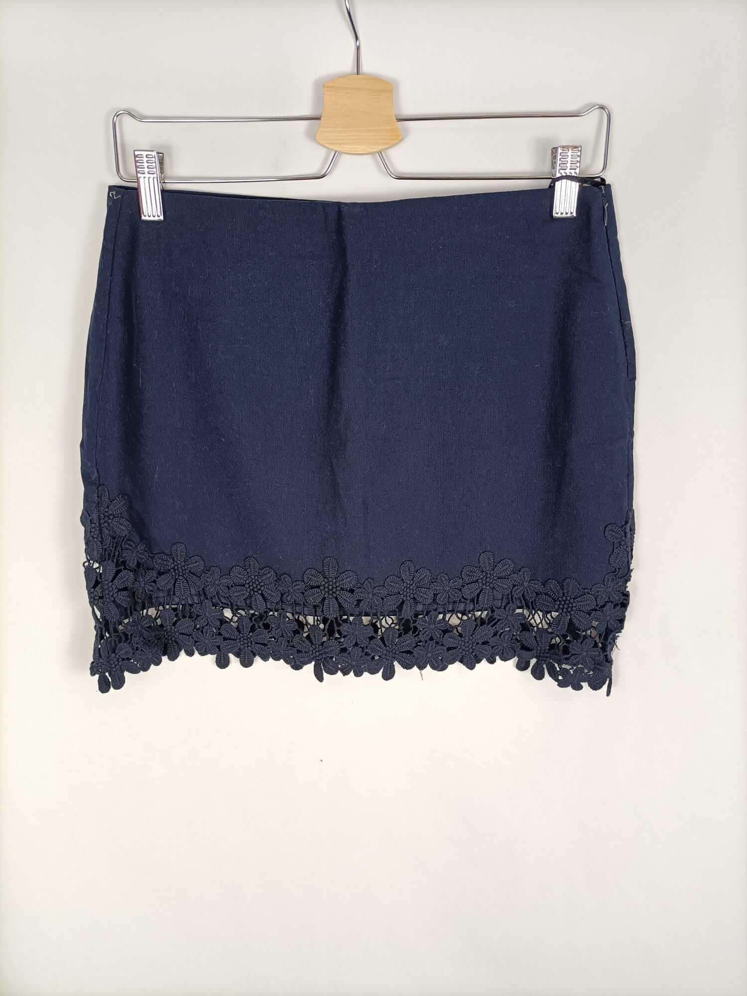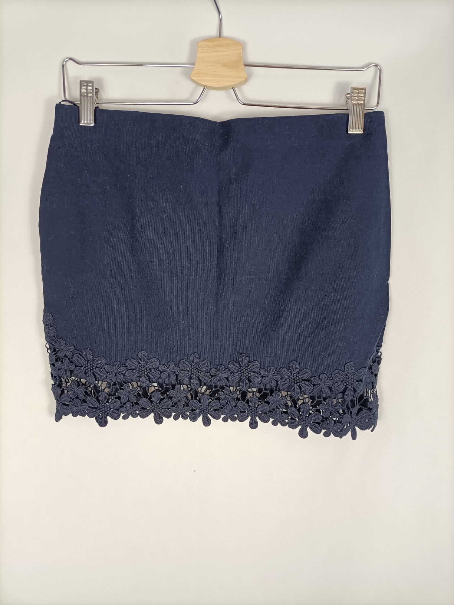 Zara.m . Falda azul marino ajustada con detalle de encaje en la parte de abajo. Cintura 38 cm largo 40 cm