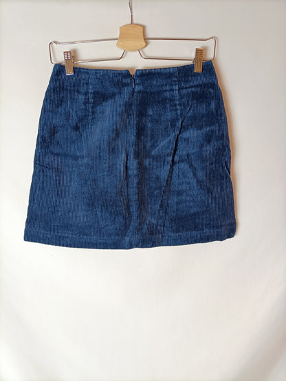 Falda corta de pana azul. no elástica. cintura 35 cm