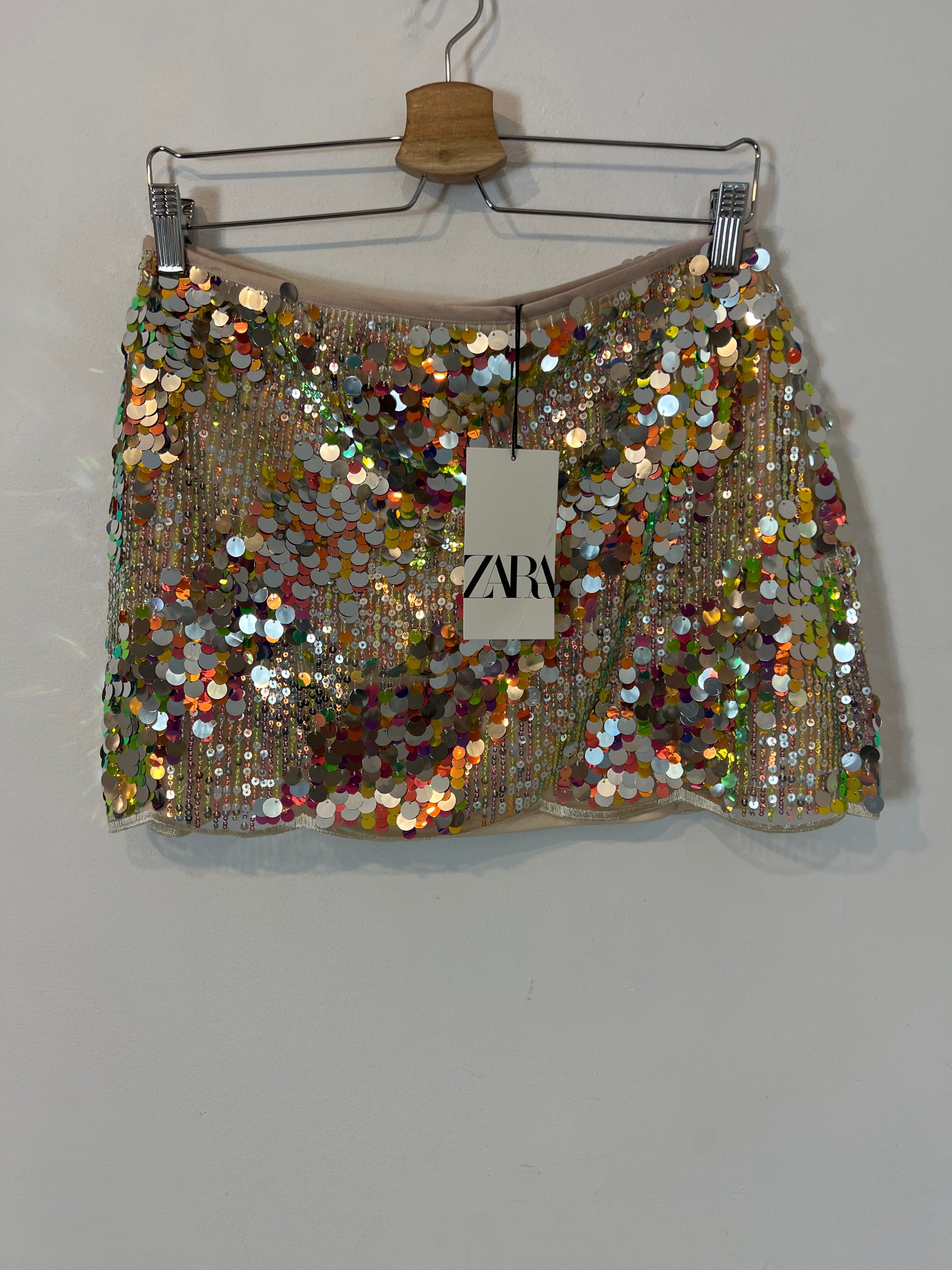 NUEVO CON ETIQUETA. Falda corta de lentejuelas. cintura 40 cm Largo 36 cm