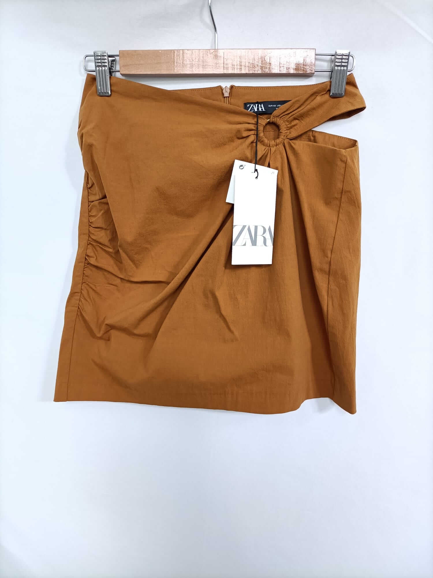 Zara. Xs. NUEVO CON ETIQUETA. Falda corta elástica. Fruncida y con mini apertura. Tejido tipo licra ajustada. Cintura 34 cm largo 42 cm