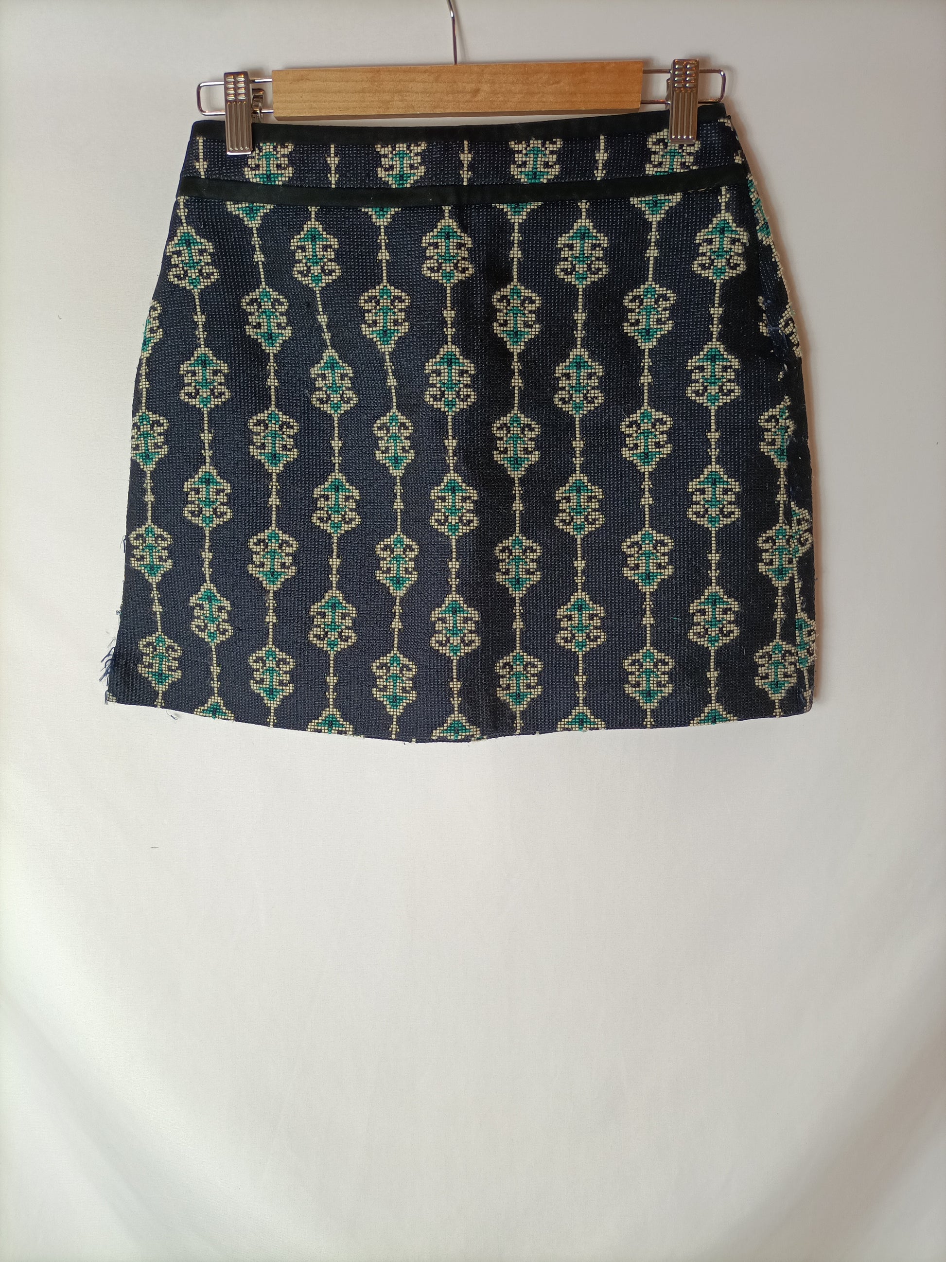 Falda corta textura estampada fondo en azul marino oscuro mezclado con negro