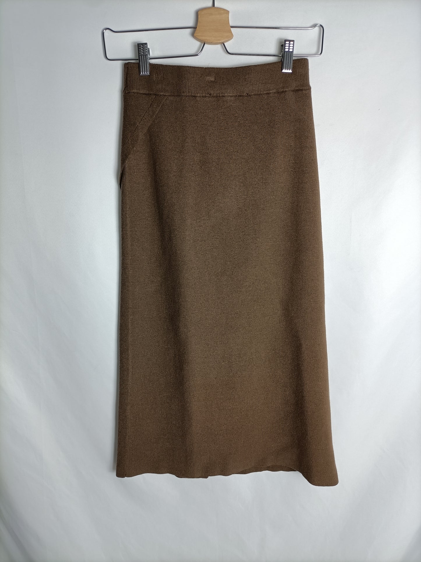ZARA. Falda de punto marrón T.s
