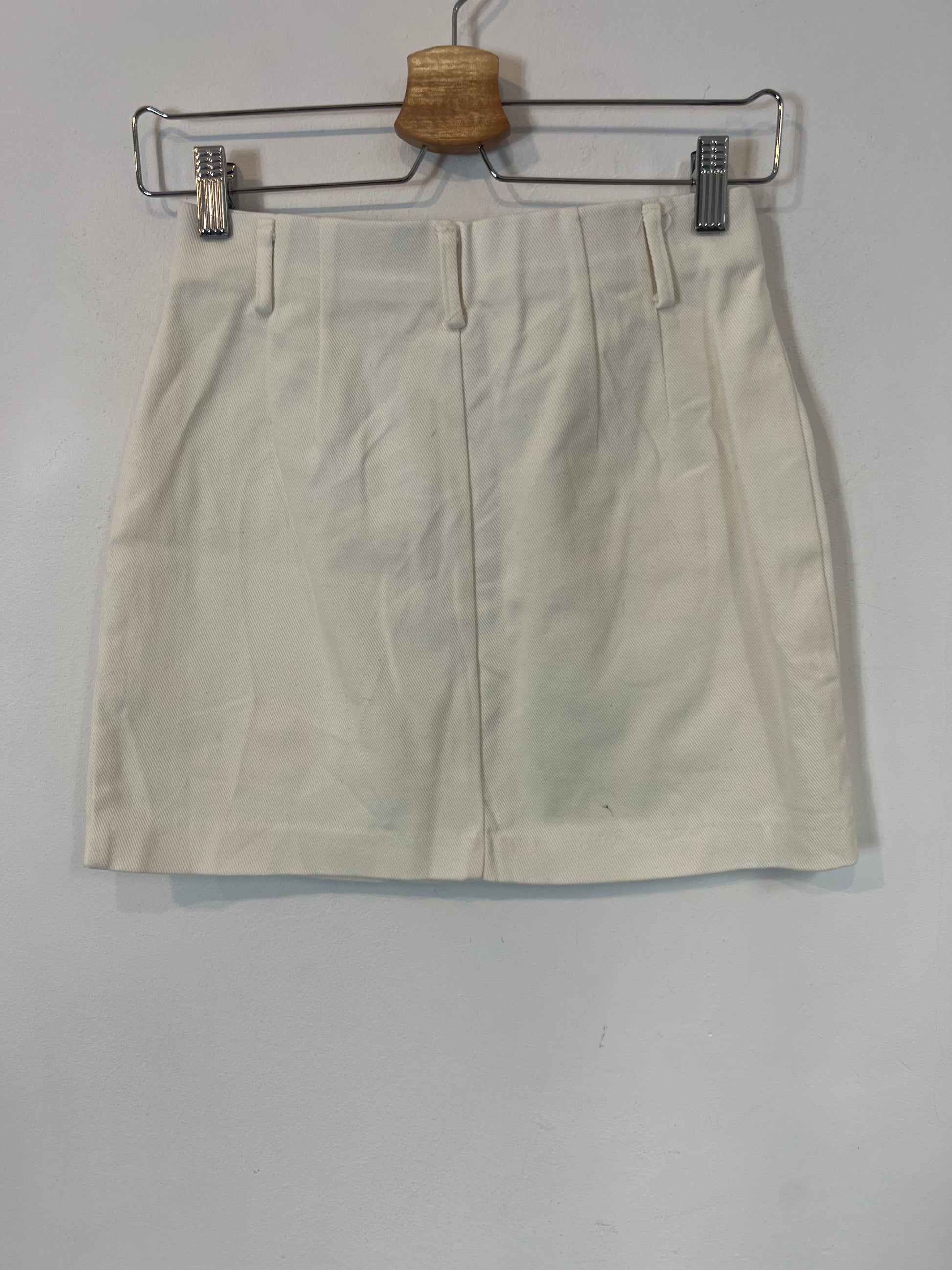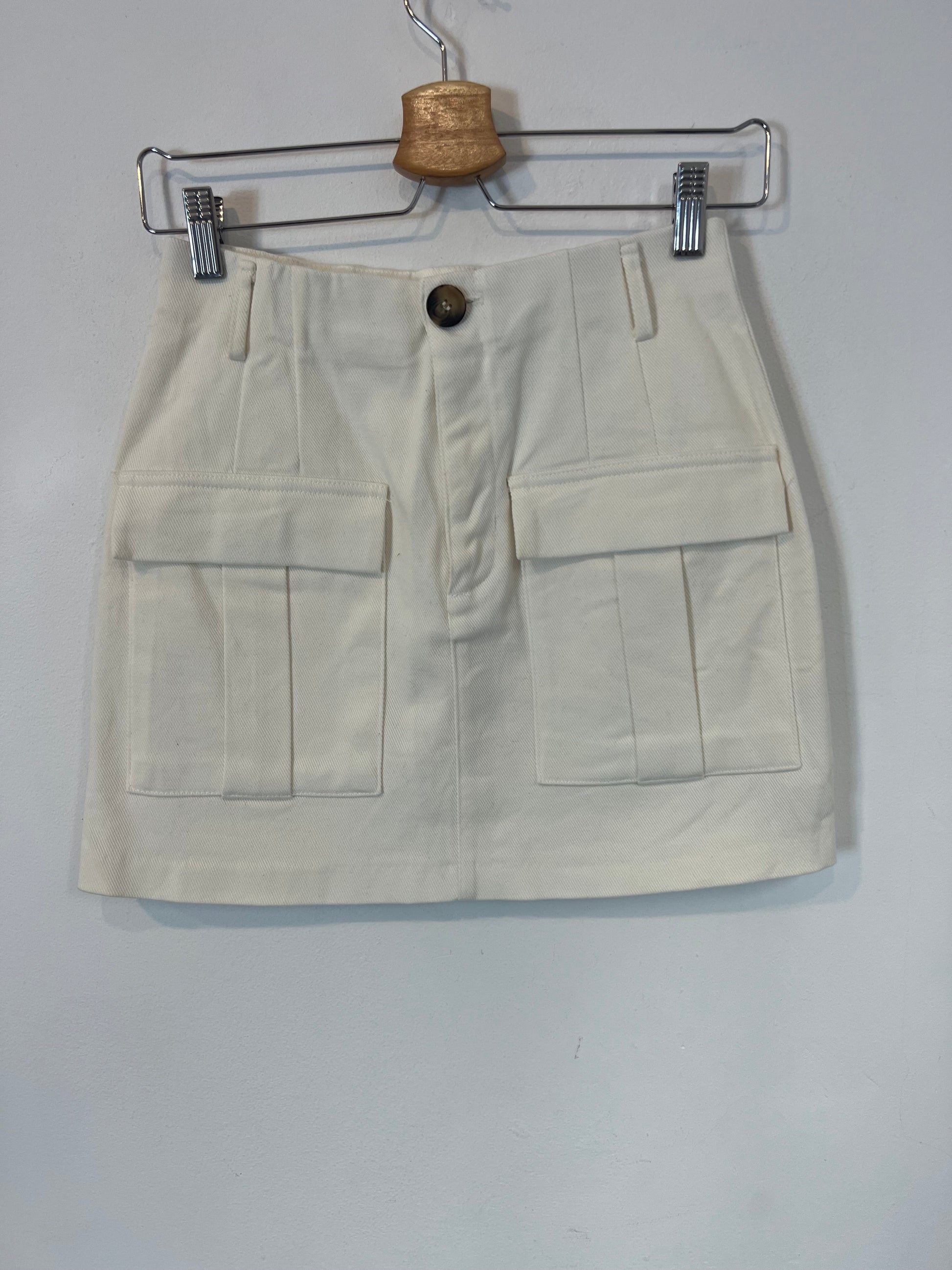 falda blanca denim bolsillos. Tara; mini marca parte trasera