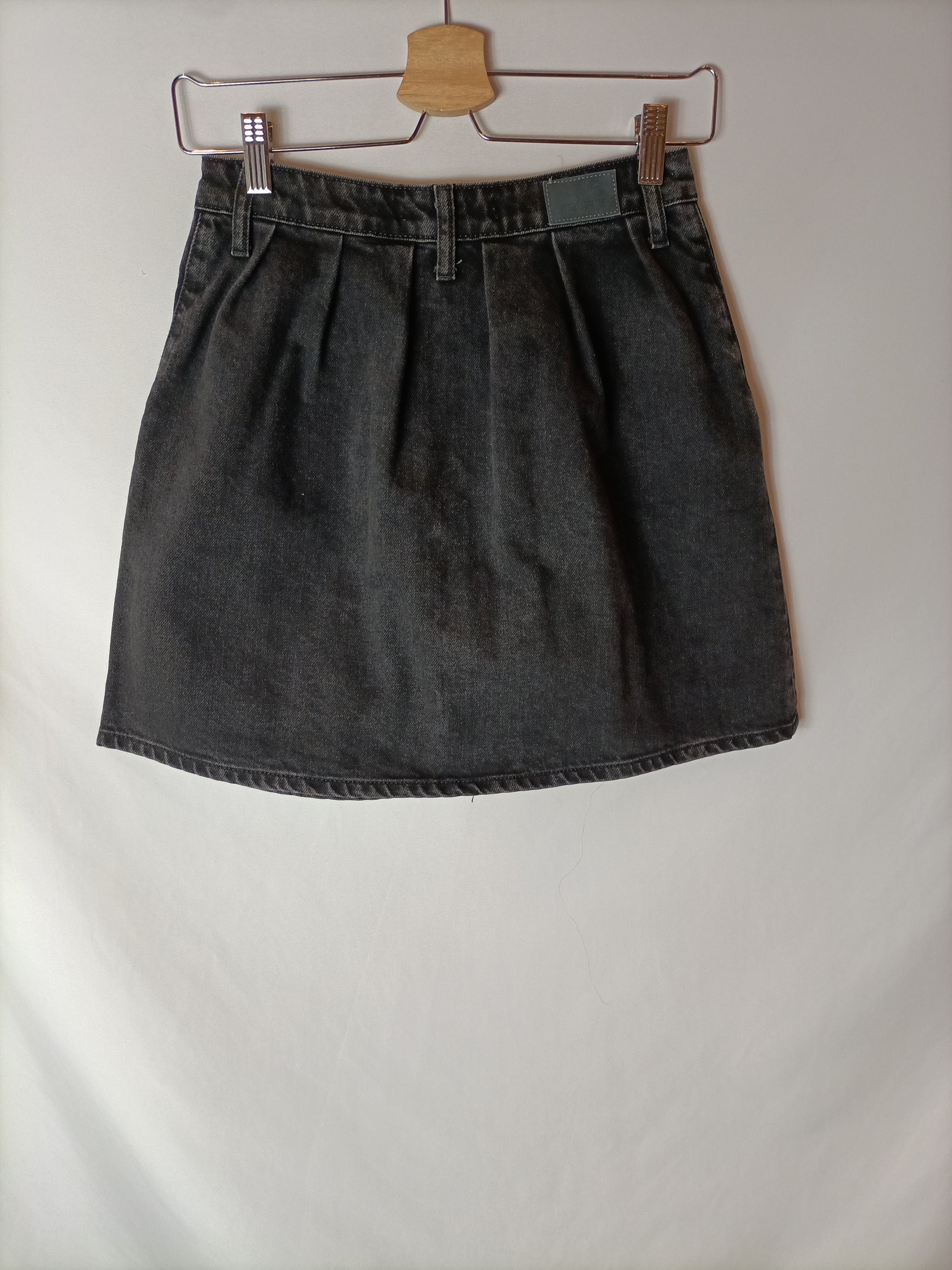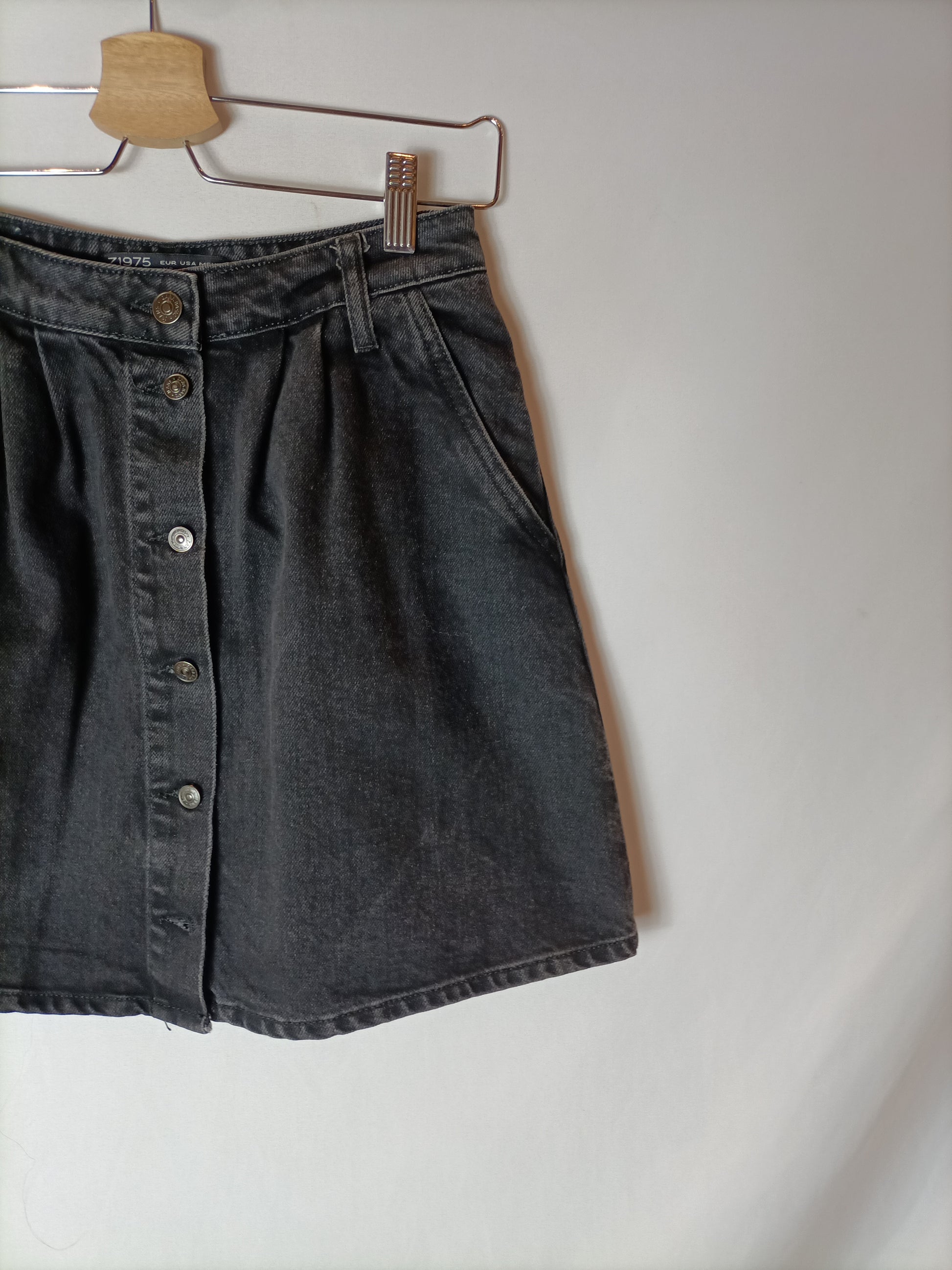 falda corta negra de tejido vaquero con botones. Cintura 34 cm