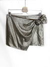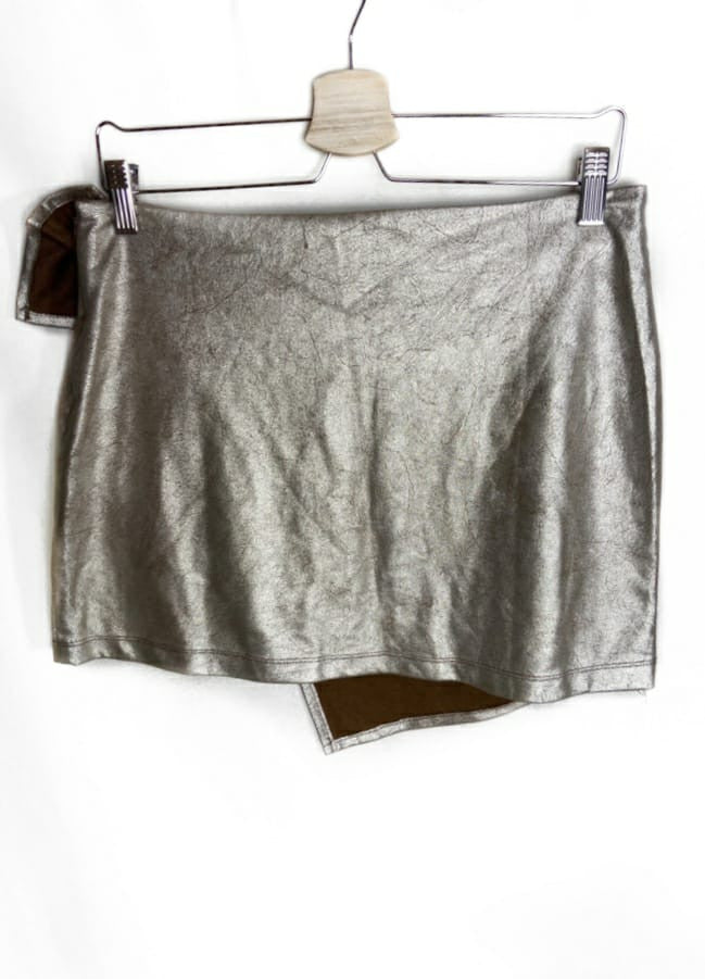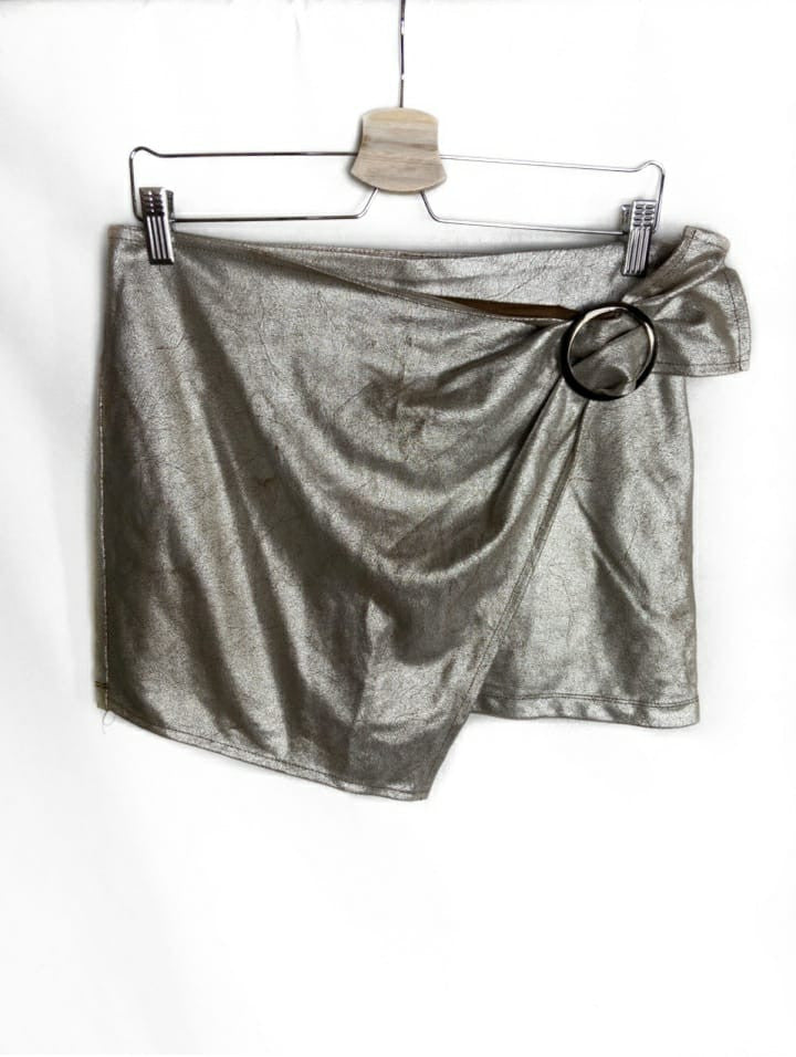 Falda cruzada dorada semiélastica, tiene cremallera en el lateral. Largo 37 cm