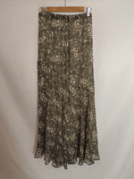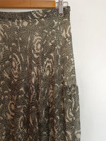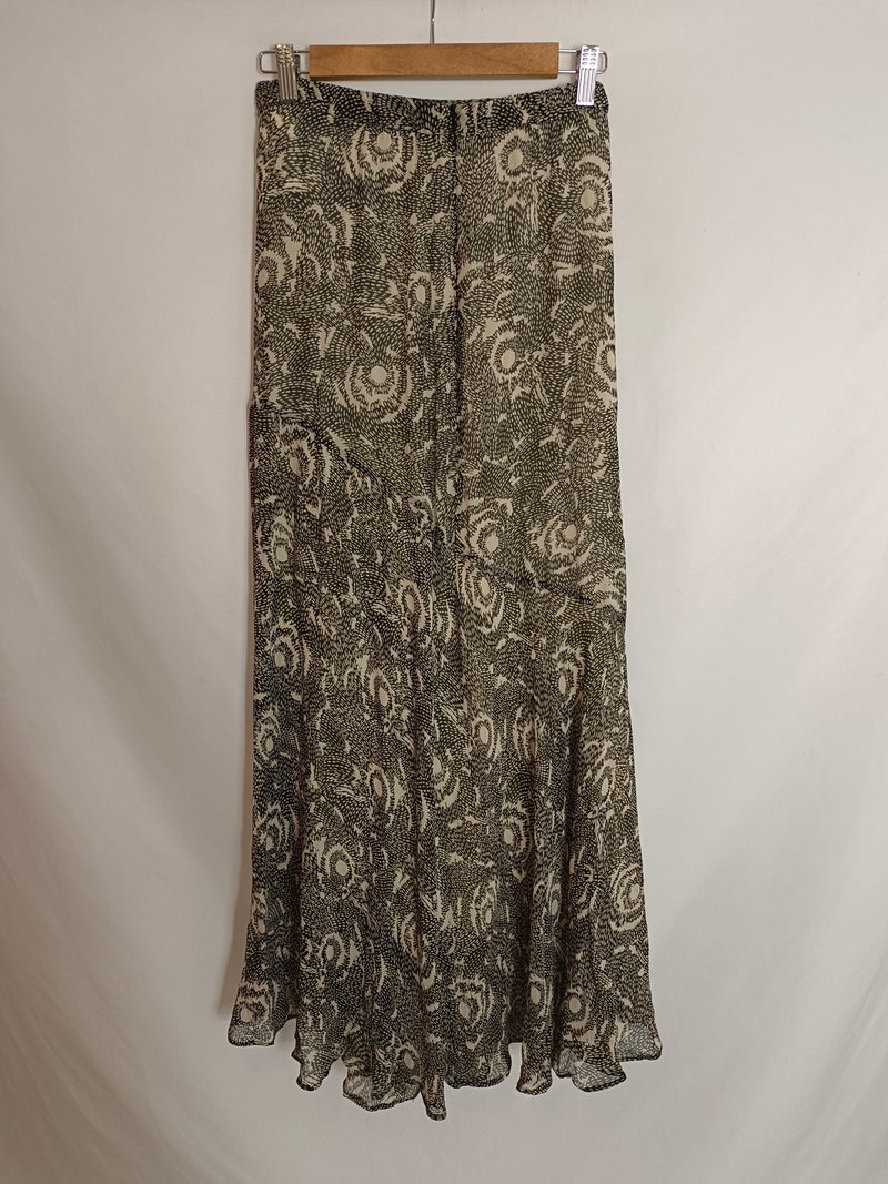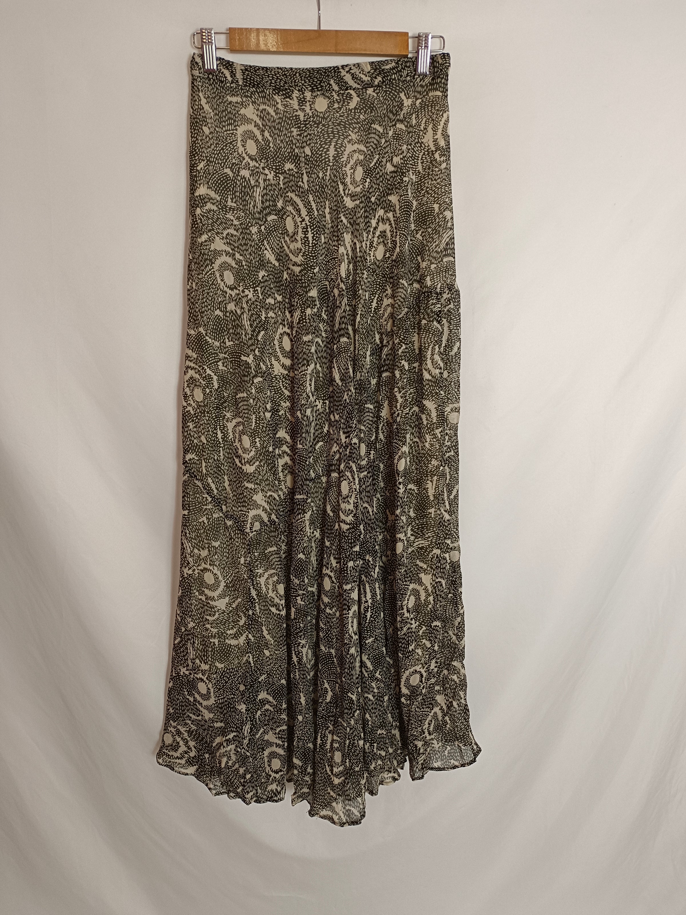 falda larga plisada con estampado beige y negro. cintura elástica.