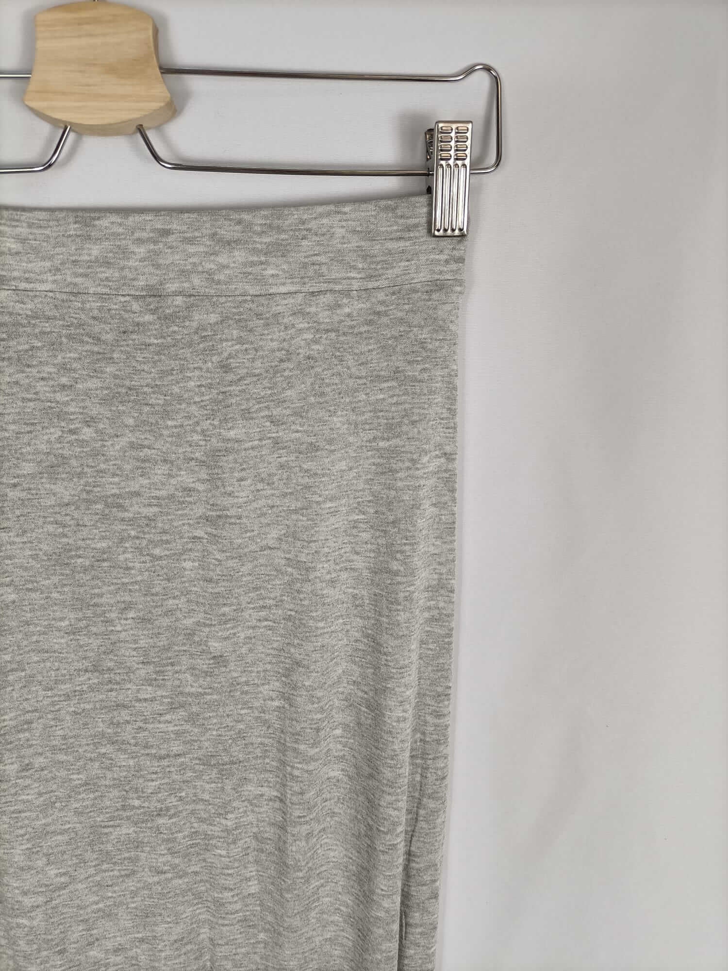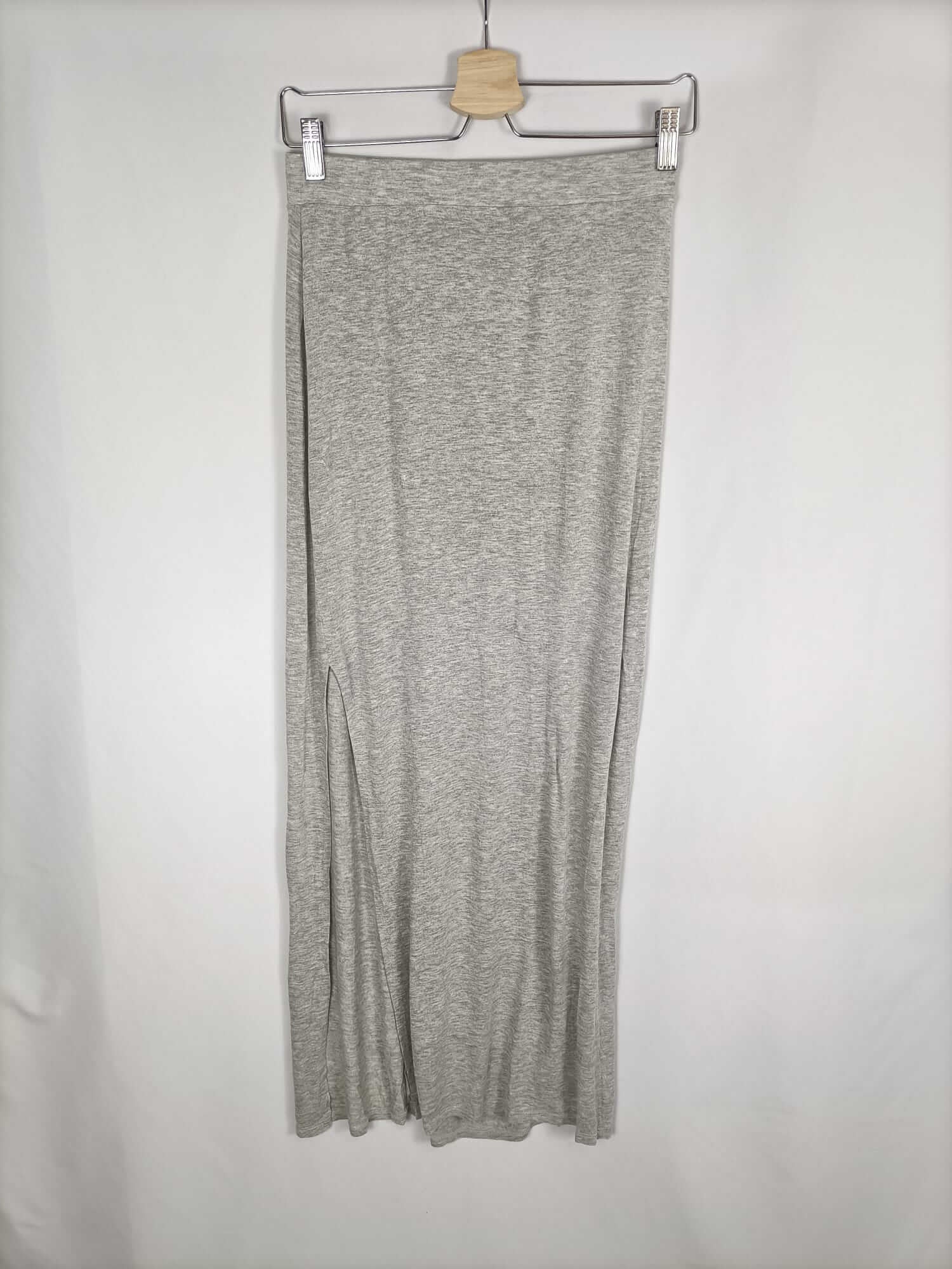 Zara. M. Falda larga gris elástica y finita. Apertura lateral. Largo 103 cm
