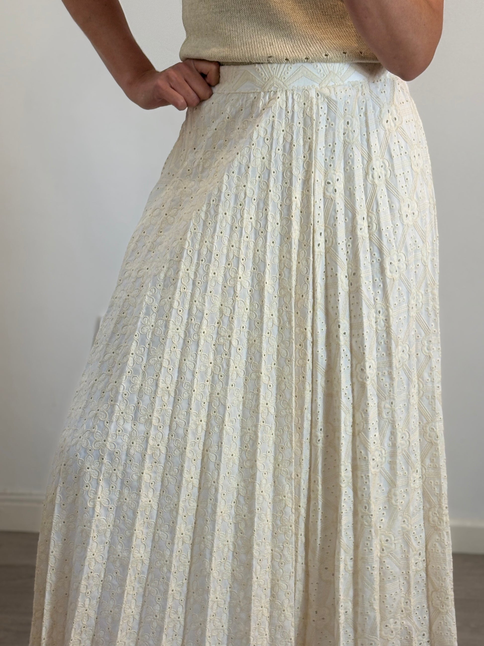 NUEVO CON ETIQUETA. Falda larga bordados plisada. Cintura 39 cm, largo 92 cm