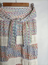 falda midi/larga blanca con detalle de hilos de colores. lazada en la cintura