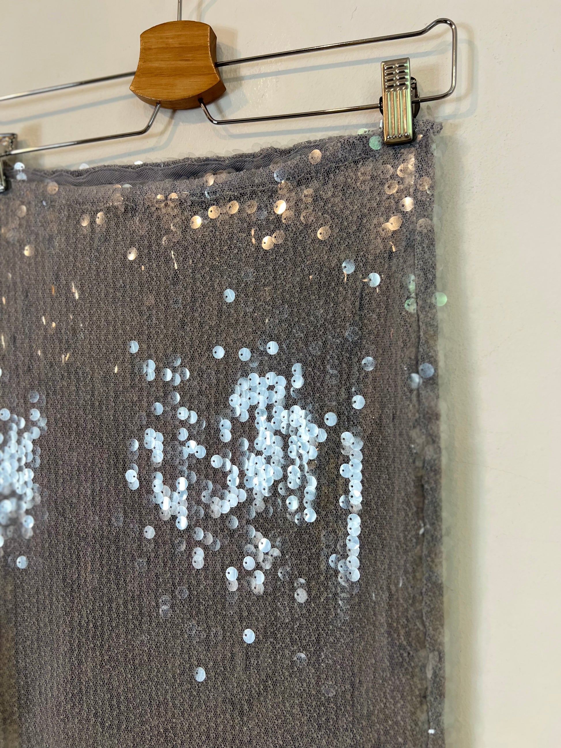 falda midi de lentejuelas azulgrisaceo. elástica.
