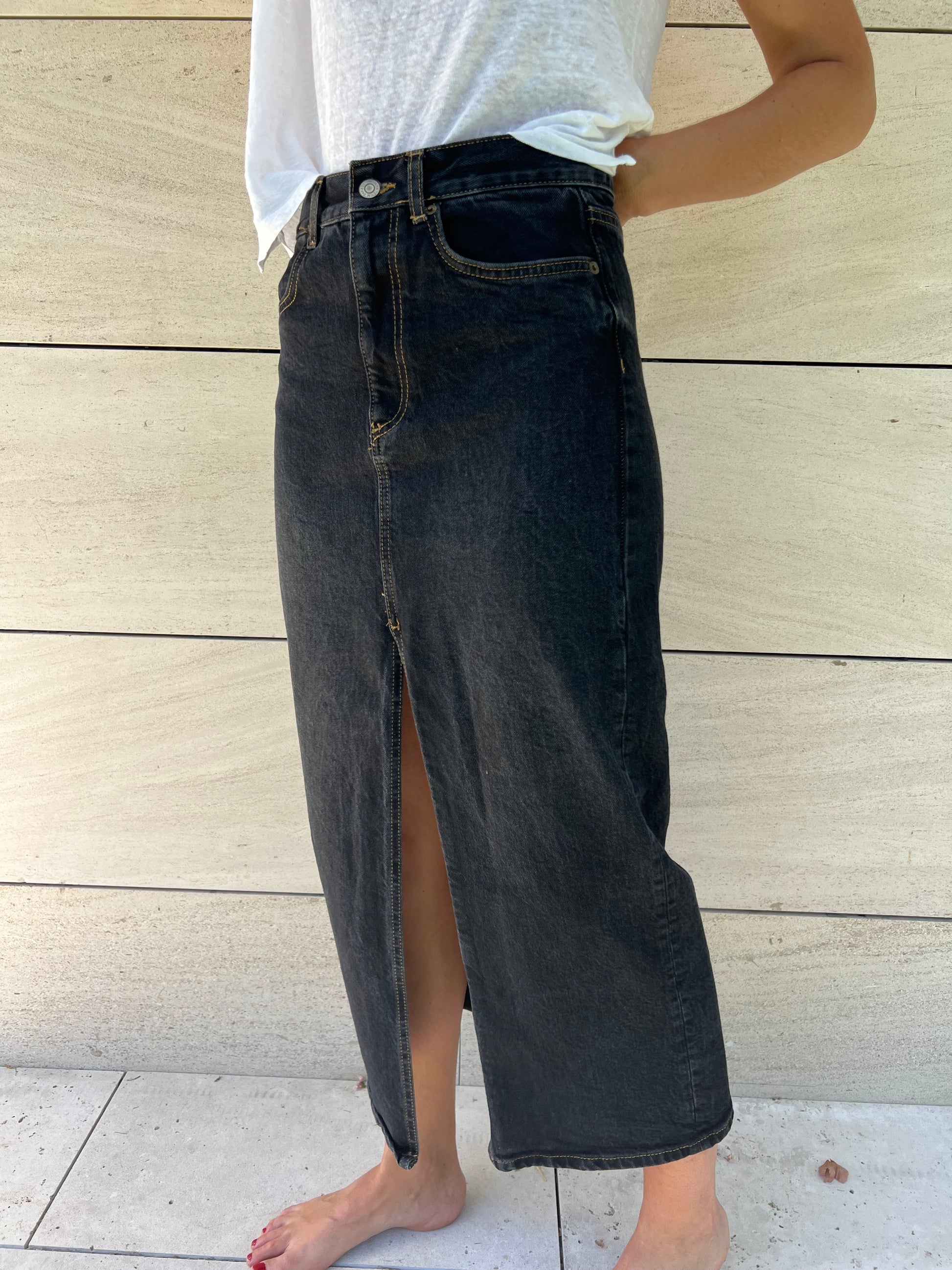 ZARA. Falda midi denim negra T.xs