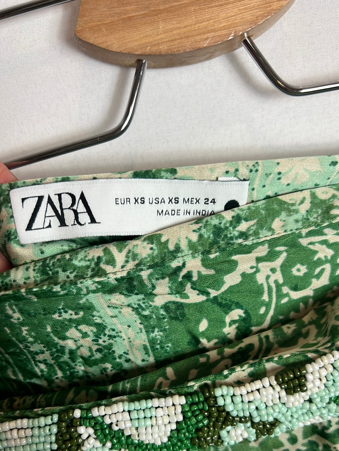 ZARA. Falda midi estilo pareo verde estampada . T XS
