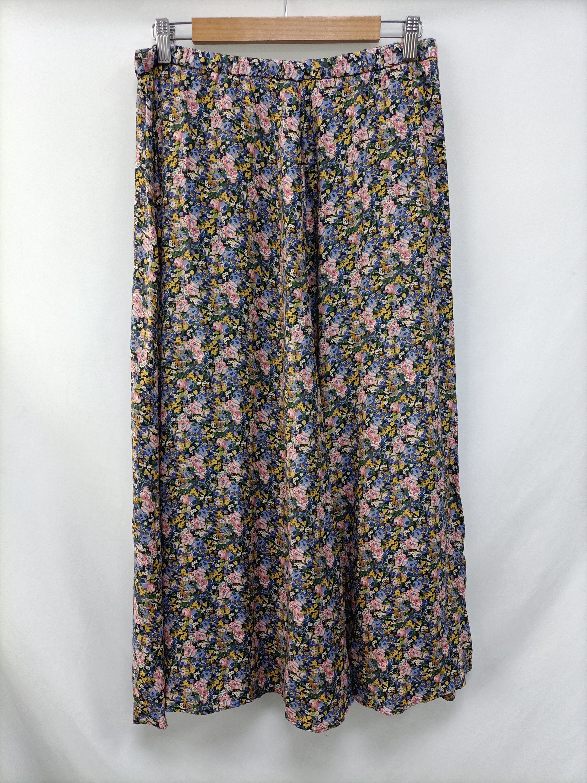 falda midi negra con flores de colores. cintura elástica. largo 86 cm
