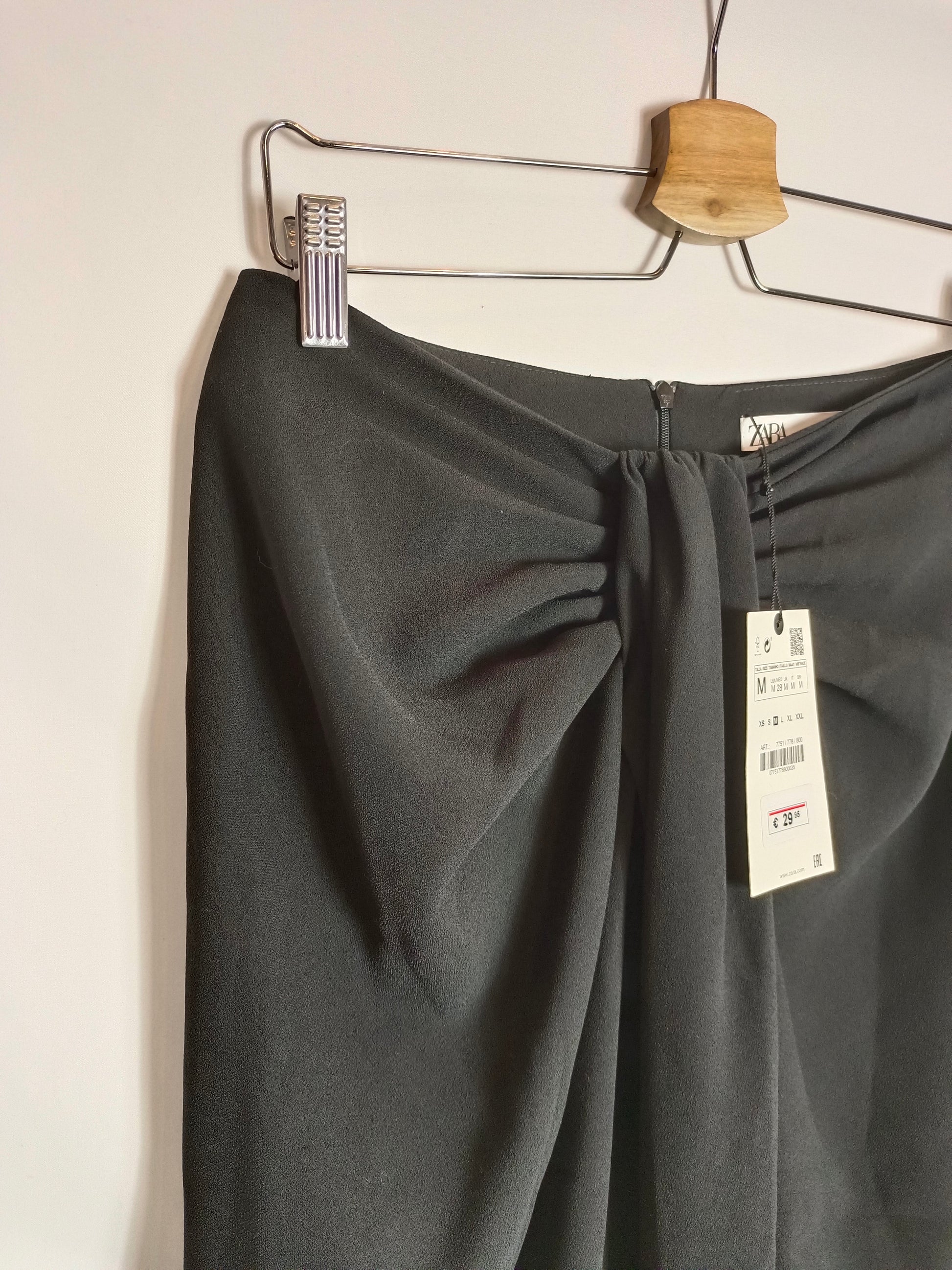 NUEVO CON ETIQUETA. falda midi negra con detalle de nudo delantero.