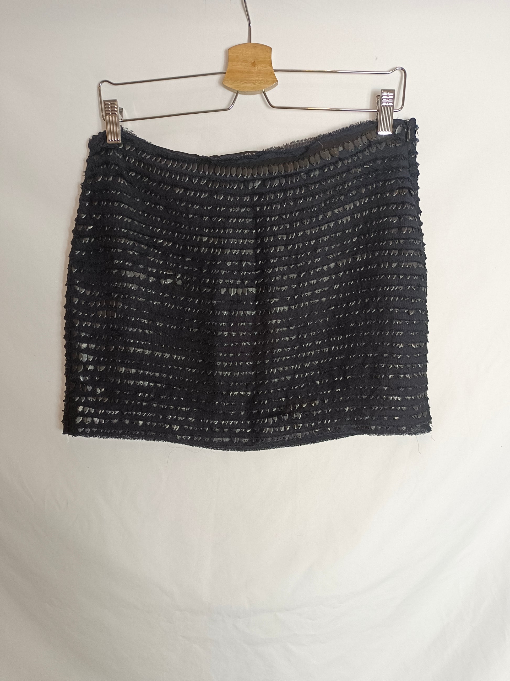ZARA. Falda negra abalorios T.m