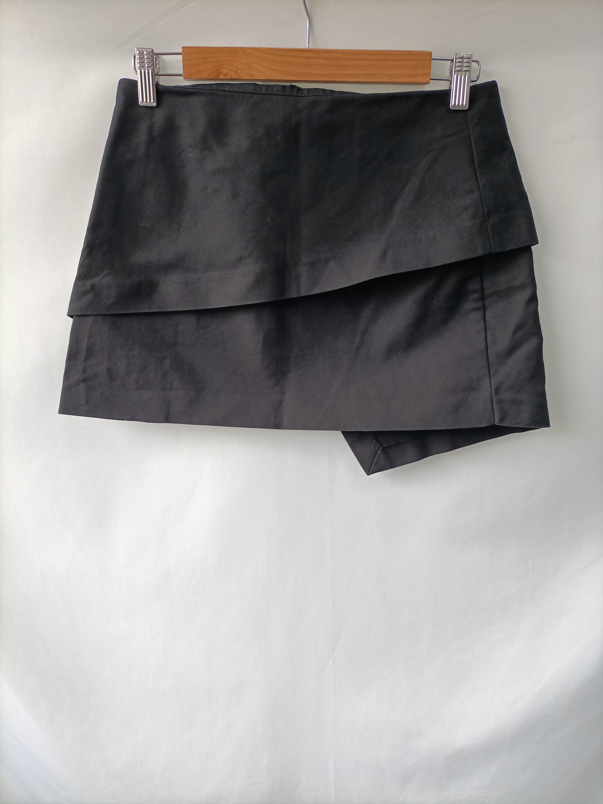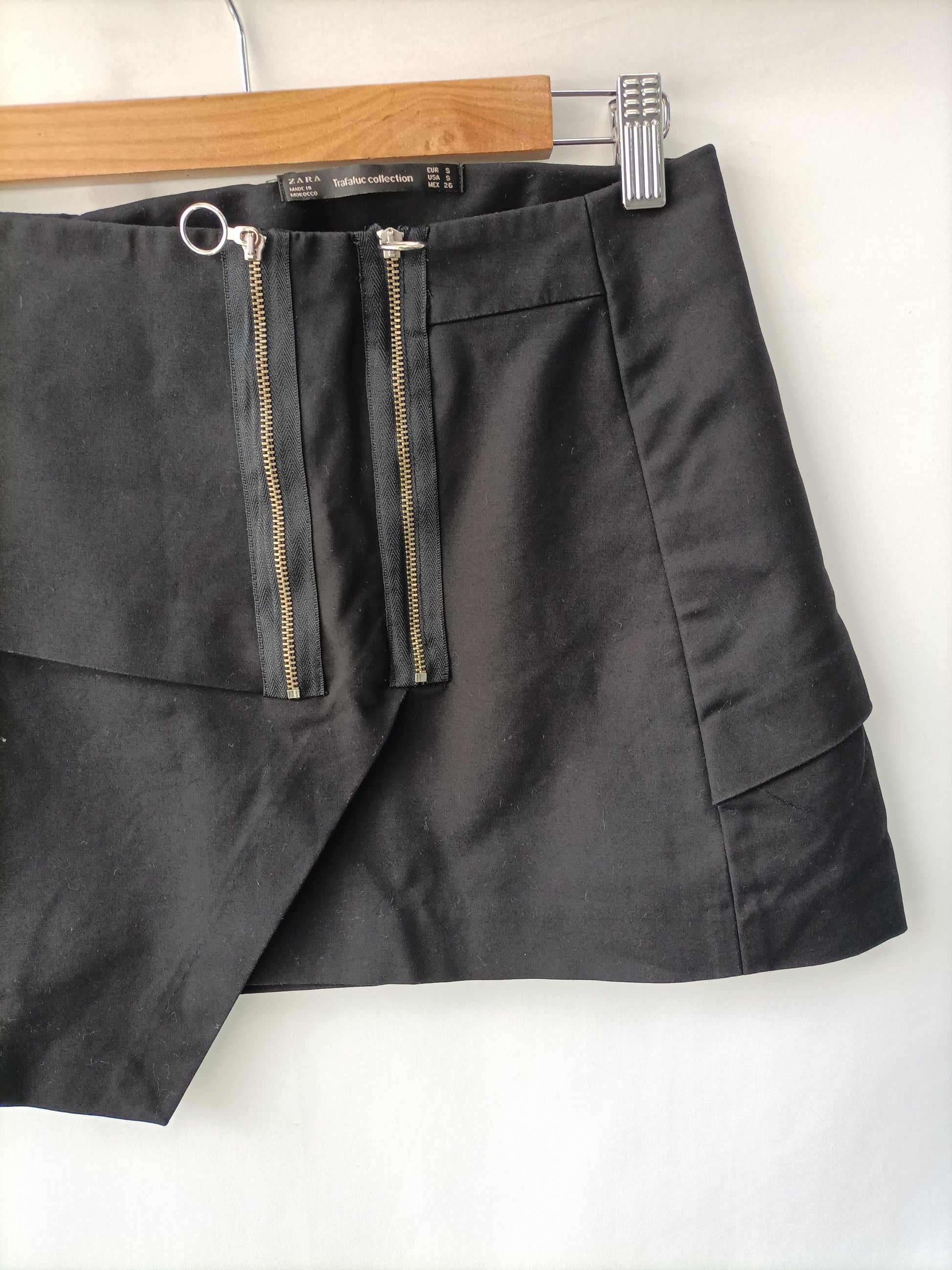 Zara. Falda negra cortita cruzado y con capas. Cremalleras delanteras. Cintura 37 cm largo 34 cm