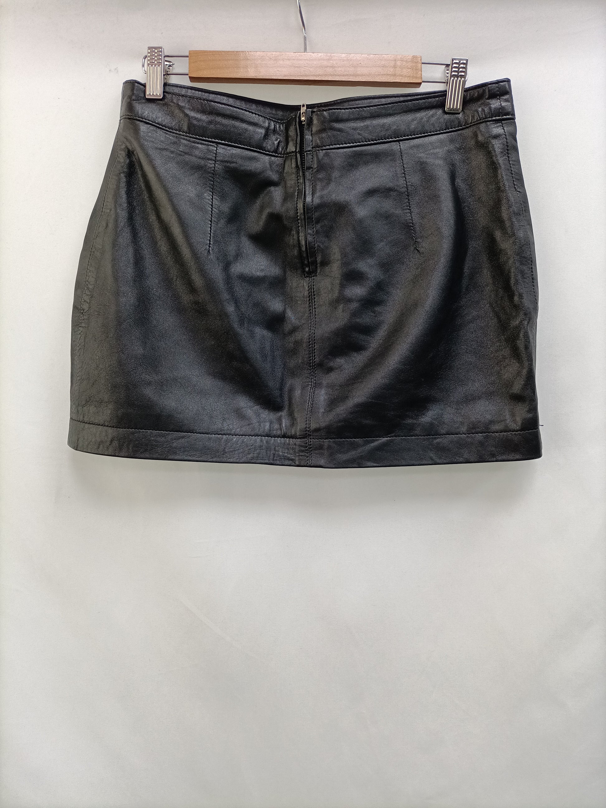 ZARA. Falda negra de piel T.m
