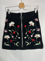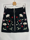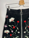 100% piel. Falda negra piel flores bordadas. Largo 41cm