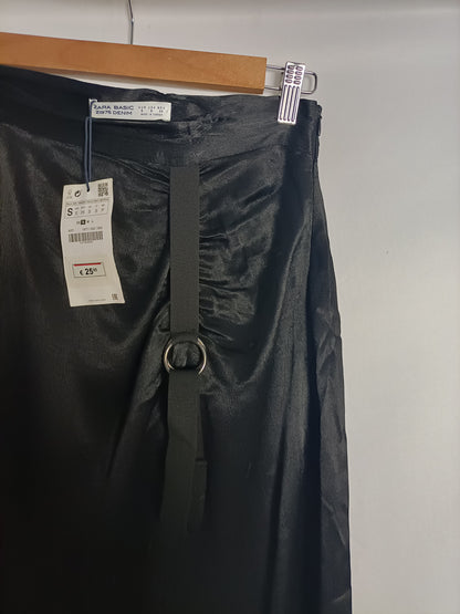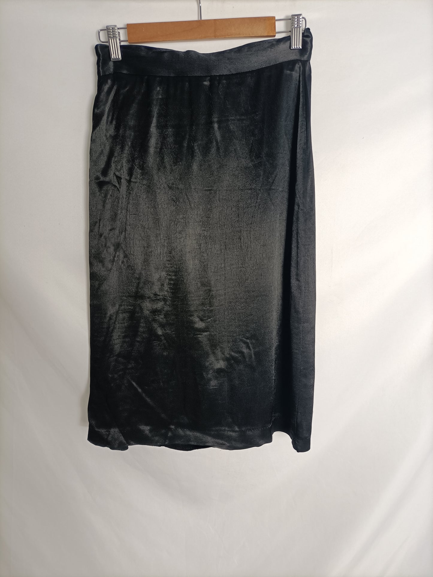 NUEVO CON ETIQUETA. Falda negra de tejido satinado fluido Cintura 35 cm