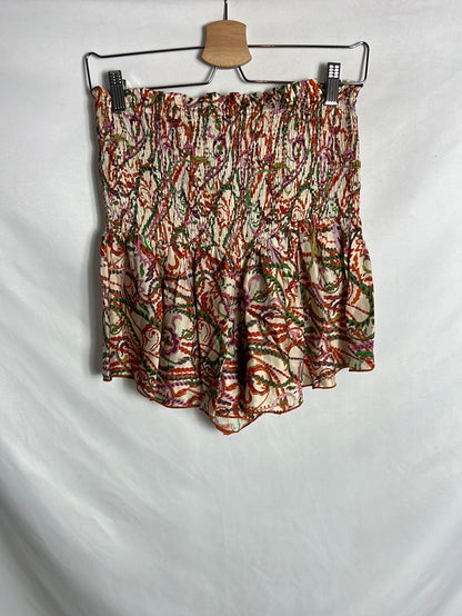 Short de tejido satinado estampado. Largo 39, cintura elástica