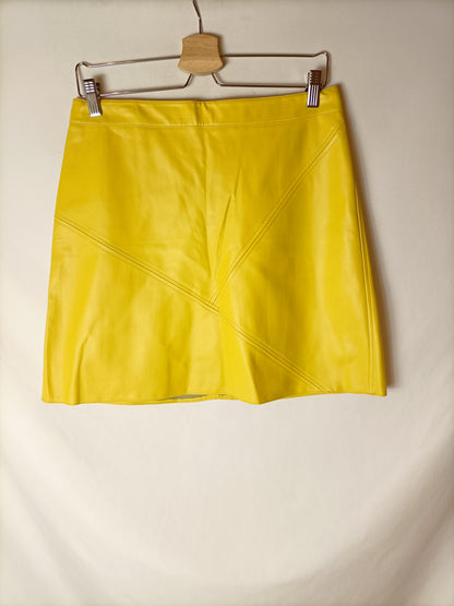ZARA. Falda polipiel amarilla. T L