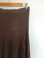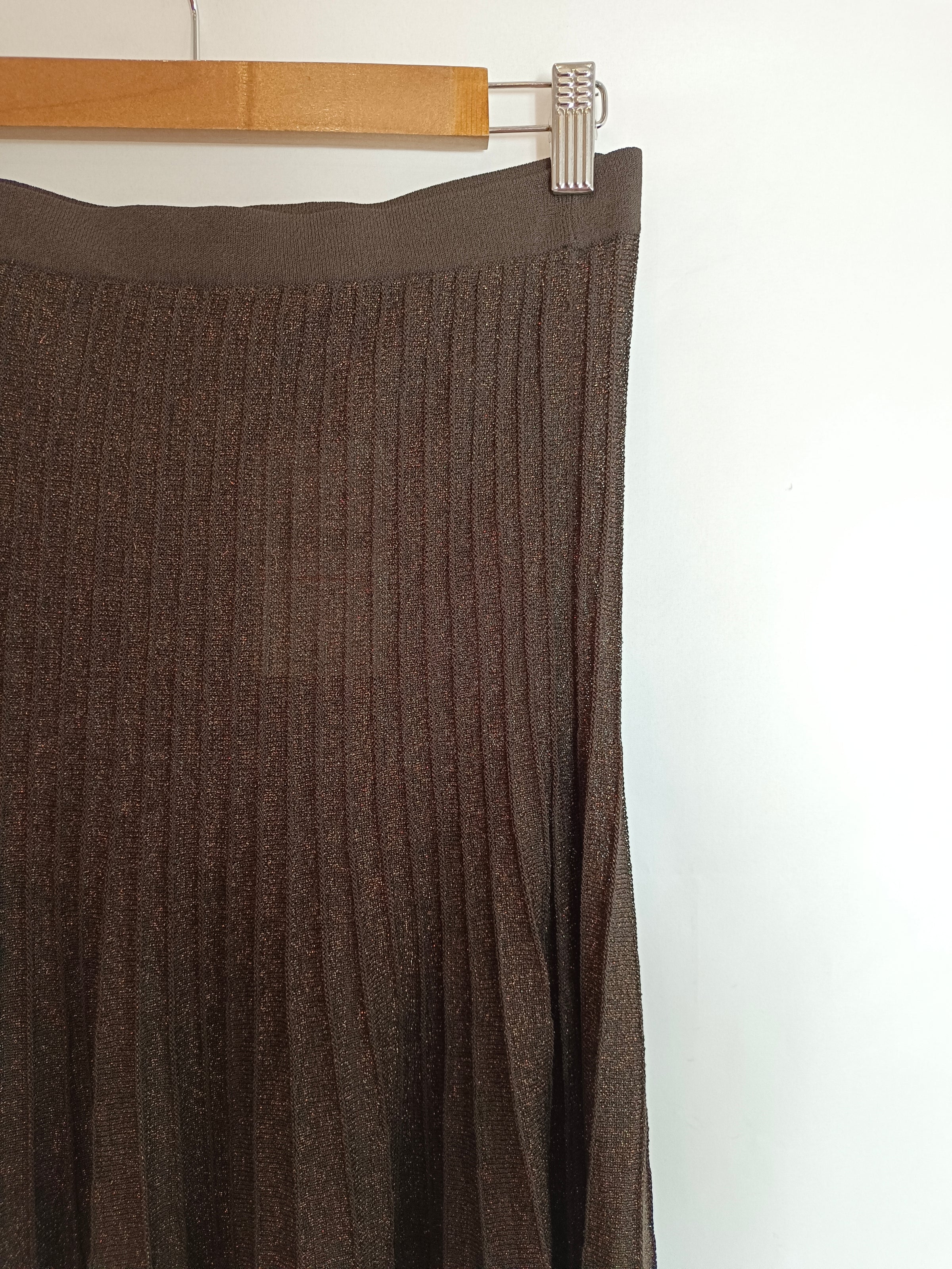 NUEVO CON ETIQUETA. Falda midi de punto marrón con hilos metálicos.